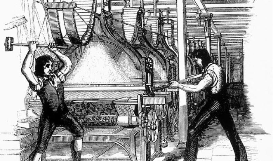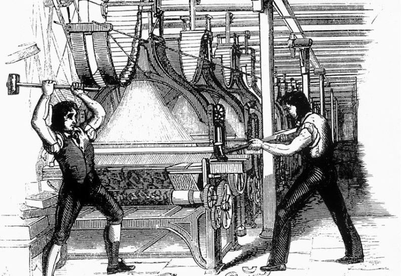 Κάποιος αψίθυμος εργάτης, ο Λουντ (Ned Ludd) που δεν ξέρομε καν αν αυτό ήταν το όνομά του, έσπασε αγανακτισμένος δυο μηχανές κλωστοϋφαντουργίας. Τον ακολούθησαν κι άλλοι και το κίνημά του εξαπλώθηκε ταχύτατα, από το Νότιγχαμ, την πατρίδα του θρυλικού παράνομου Ρομπέν (Robin Hood), σε όλη την Αγγλία. Κάποια στιγμή δολοφονήθηκε και ένας βιομήχανος που χρησιμοποίησε όπλα εναντίον τους. Κινητοποιήθηκε φυσικά ολόκληρος ο κρατικός κατασταλτικός μηχανισμός για να τους συνετίσει. Ακολούθησαν ομαδικές δίκες και πολλές καταδίκες που κατέληξαν στην αγχόνη, αλλά το κίνημα δεν σταματούσε. Τους κυνηγούσε όλη η άρχουσα τάξη. Στη βουλή των λόρδων όμως, παραδόξως, βρέθηκε ένας λόρδος να τους υπερασπιστεί. Η αγανάκτησή τους, έλεγε, ήταν δικαιολογημένη. Ονομαζόταν Μπάιρον (Lord George Byron). Για την καταστολή του κινήματος χρησιμοποιήθηκε στρατός περισσότερος από όσος για την αντιμετώπιση του Ναπολέοντα. Την ίδια εποχή ο Μάρξ (Karl Marx) και ο Έγκελς (Friedrich Engels) δεν πήραν το μέρος τους. Δεν φταίνε οι μηχανές για να τις καταστρέφουν. Οι εργάτες έπρεπε να στραφούν κατά της εκμετάλλευσης. Οι άνθρωποι, όχι τα πράγματα, έχουν ευθύνες.