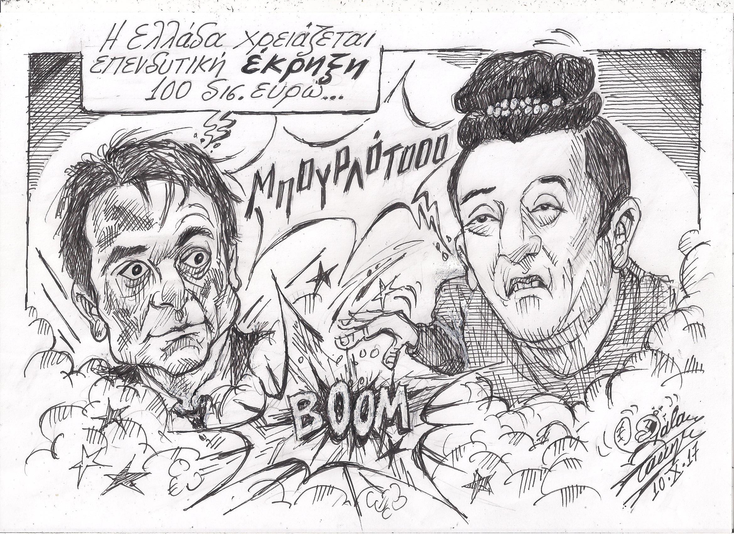 Σκίτσο του Τάκη Χάλαρη με θέμα: "Σαν παλιό σινεμά"