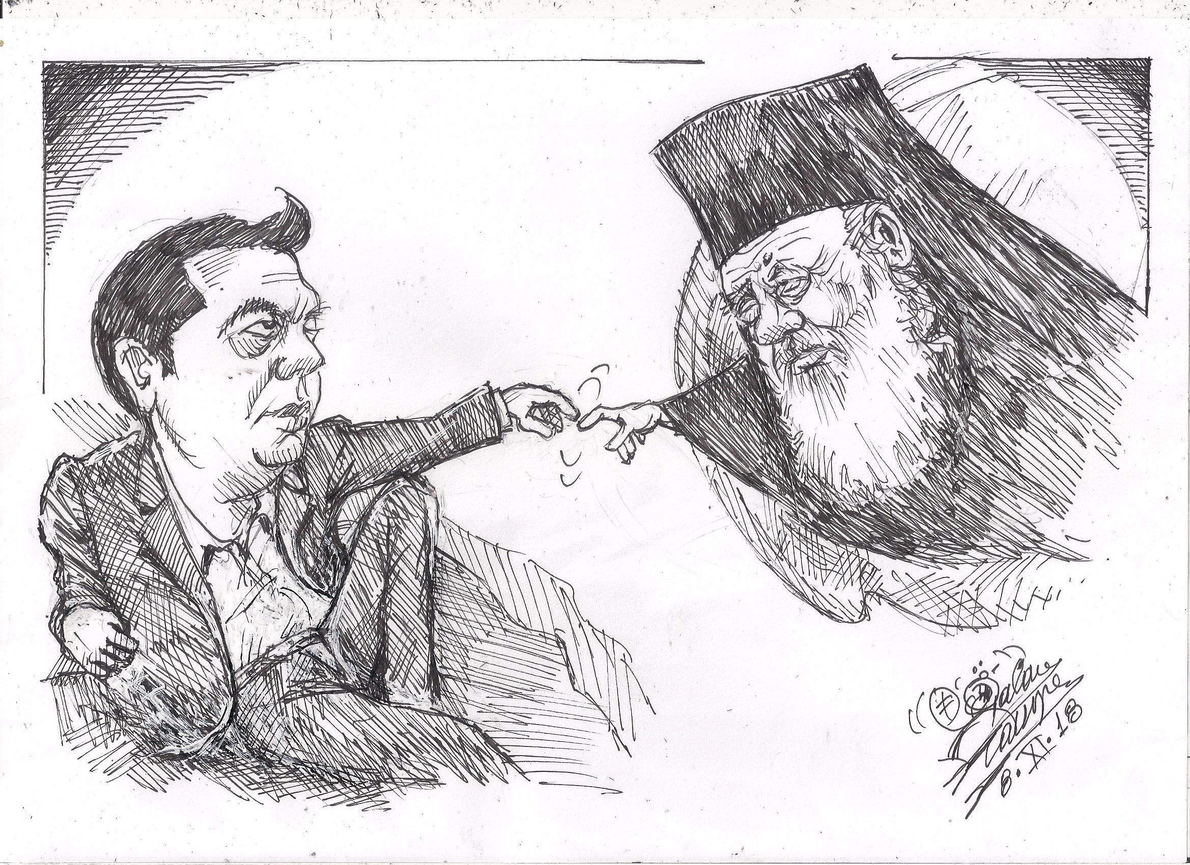 Σκίτσο του Τάκη Χάλαρη με θέμα: "Πρόθεση συμφωνίας"