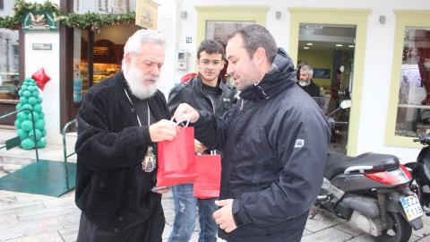 Όπως κάθε χρόνο, ο Μητροπολίτης Σύρου δώρισε στους καταστηματάρχες το καθιερωμένο Χριστόψωμο, ένα από τα ομορφότερα έθιμα των άγιων αυτών ημερών, ενώ έλαβε και ο ίδιος συμβολικά δώρα για μία όμορφη και δημιουργική νέα χρόνια με λιγότερες έγνοιες.