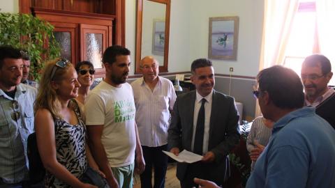 Συγκεκριμένα, λίγο μετά τη μία το μεσημέρι οι κάτοικοι συναντήθηκαν στην είσοδο του Δημαρχιακού Μεγάρου και μετέβησαν από κοινού στο γραφείου του δημάρχου ώστε να του γνωστοποιήσουν τις θέσεις τους για το πολυσυζητημένο θέμα της λήψης μέτρων από τις 15 Ιουνίου έως και τις 15 Σεπτεμβρίου.