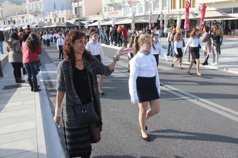 Παραμονή της εθνικής επετείου, η οποία εορτάστηκε το πρωί στα σχολεία της Πρωτοβάθμιας και Δευτεροβάθμιας Εκπαίδευσης, αλλά και στην Ακαδημία Εμπορικού Ναυτικού Σύρου, τα τμήματα παρέλασαν στο κέντρο της πόλης και χειροκροτήθηκαν από μικρούς και μεγάλους, που συγκεντρώθηκαν τόσο στην πλατεία Ηρώων, όσο και στην αναζωογονημένη παραλιακή ζώνη.