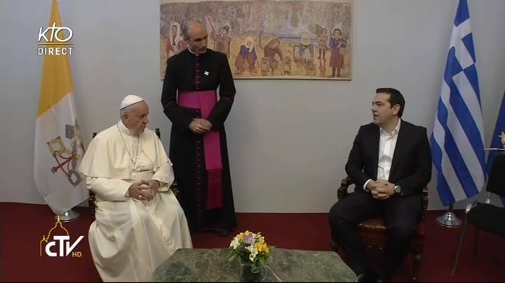 Αμέσως μετά τη συνάντηση του Πάπα με τον Πρωθυπουργό ακολούθησε η συνάντηση των θρησκευτικών ηγετών, κατά την οποία ο Οικουμενικός Πατριάρχης δήλωσε «Μέσα στα 3 χρόνια της παποσύνης τους έκανε πολλά πράγματα όχι μόνο για την Καθολική εκκλησία, αλλά για την ανθρωπότητα γενικότερα και συνεχίζει να τα κάνει, για τους πονεμένους αυτής της γης».