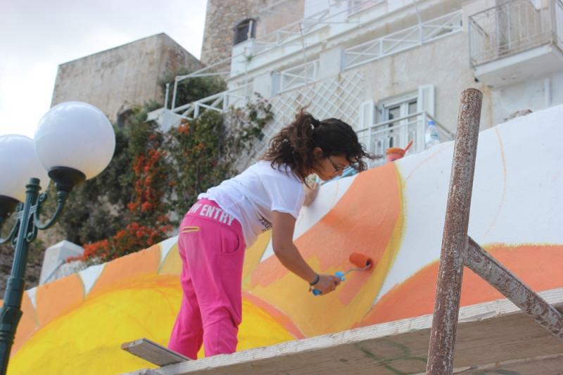 Λίγο πριν την έναρξη της εξεταστικής περιόδου, οι μαθητές της Β΄ και Γ΄ τάξης των δύο Γυμνασίων υπό την πολύτιμη καθοδήγηση της καθηγήτριάς τους στο μάθημα των Εικαστικών, Αργυρούς Διαμαντάκη θέλησαν να “ντύσουν” έναν ολόλευκο τοίχο με έναν ήλιο – ηλιοτρόπιο, δίνοντας χρώμα στο παραλιακό μέτωπο των Αστεριών, όπου καθημερινά μεταβαίνουν λουόμενοι και την καλοκαιρινή περίοδο πολλοί επισκέπτες.