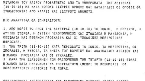 Αναλυτικά ο καιρός σε όλη τη χώρα στην επισυναπτόμενη φωτογραφία.