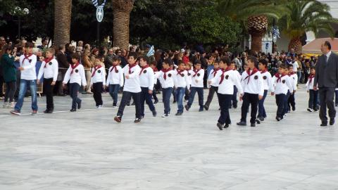 Με τη μαθητική παρέλαση στην πλατεία Μιαούλη, χωρίς τη μουσική συνοδεία της Φιλαρμονικής του Δήμου Σύρου – Ερμούπολης κορυφώθηκαν οι εκδηλώσεις της εθνικής επετείου της 28ης Οκτωβρίου, παρουσία πλήθους πολιτών στο νησί.