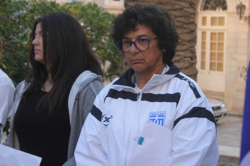 «Η λήθη είναι το χειρότερο που μπορεί να συμβεί στις μέρες μας» υπογράμμισε ο Διευθυντής του 1ου Γυμνασίου Σύρου, Τζώρτζης Μακρυωνίτης, συγχαίροντας τους δρομείς και την καθηγήτρια φυσικής αγωγής κ. Σκεύη Λακαταμίτου για την αγάπη και την αδιάκοπη προσπάθειά της για τη διατήρηση της ιστορικής μνήμης. «Η Σκεύη είναι Κύπρια, έχει πονέσει πιο πολύ από όλους μας από την εισβολή στην Κύπρο και είμαι σίγουρος ότι θα συνεχίσει αυτό τον αγώνα μέχρι να δοθεί μία λύση επωφελής για τους Κυπρίους και την Ελλάδα».