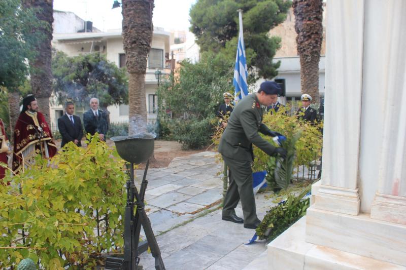 Αμέσως μετά, ακολούθησε κατάθεση στεφάνων στο Εθνικό Ηρώο της πόλης. Σημειώνεται ότι από τον εορτασμό, απείχε ο Δικηγορικός Σύλλογος Σύρου, ο οποίος σε σχετική ανακοίνωσή του , έκανε γνωστή την απόφασή του να μην καταθέσει στεφάνι έως ότου επανατοποθετηθεί το Μνημείο της Εθνικής Αντίστασης στο λιμάνι της Ερμούπολης.
