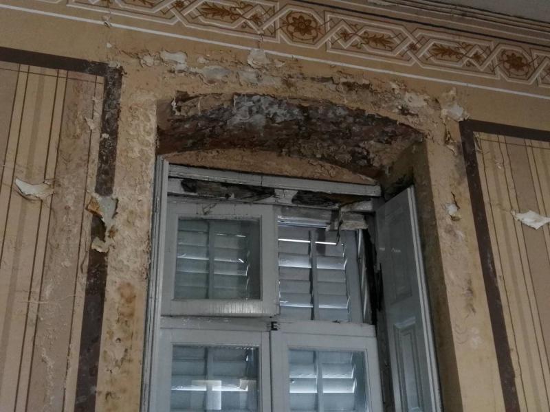 Η εισροή νερού από την οροφή, που “πέρασε” στον εσωτερικό χώρο του δεύτερου ορόφου, πολλαπλασίασε τα προβλήματα υγρασίας που έχουν διαπιστωθεί στους τοίχους και τα οποία έχουν καταστρέψει μεγάλο μέρος των οροφογραφιών και τοιχογραφιών του κτιρίου, το οποίο αποτελεί ένα από τα αρχιτεκτονικά μνημεία της πόλης. Επιπλέον, η αποκόλληση σοβάδων, η δημιουργία ρωγμών σε τμήματα επιφανειών των τοίχων, ακόμη όμως και η αποκόλληση τμημάτων των ξύλινων κουφωμάτων, κάποια από τα οποία έχουν σαπίσει, γέννησαν ιδιαίτερη ανησυχία στον πρόεδρο, ο οποίος και μέσω της επισήμανσης των σοβαρών προβλημάτων του κτιρίου, επιδιώκει να ευαισθητοποιήσει κάθε αρμόδια πλευρά για την αποκατάσταση των φθορών.