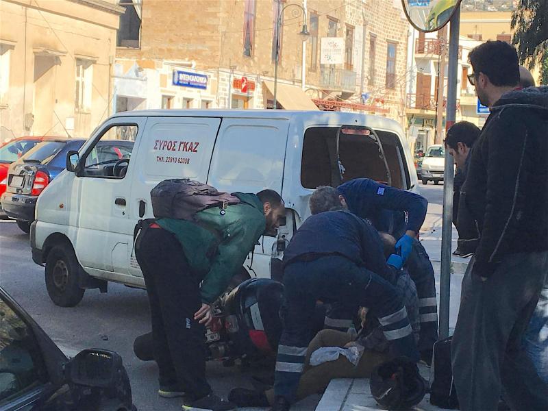 Ατύχημα σημειώθηκε πριν από λίγη ώρα στη διασταύρωση της οδού Πολυτεχνείου στην Ερμούπολη με τον δρόμο προς Γαλησσά, έμπροσθεν του Κλειστού Γυμναστηρίου.
