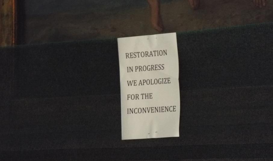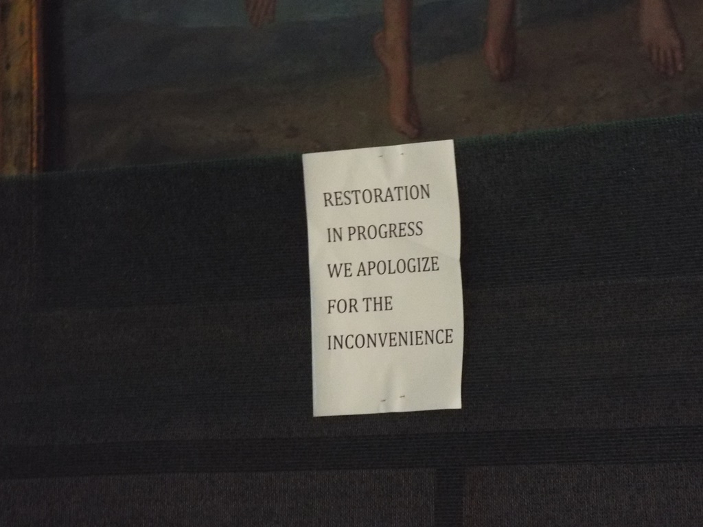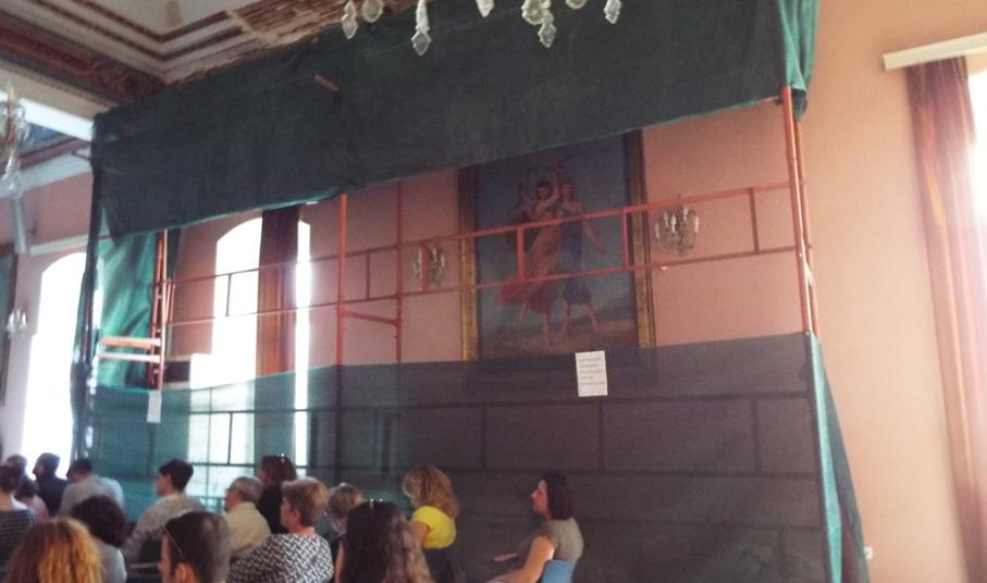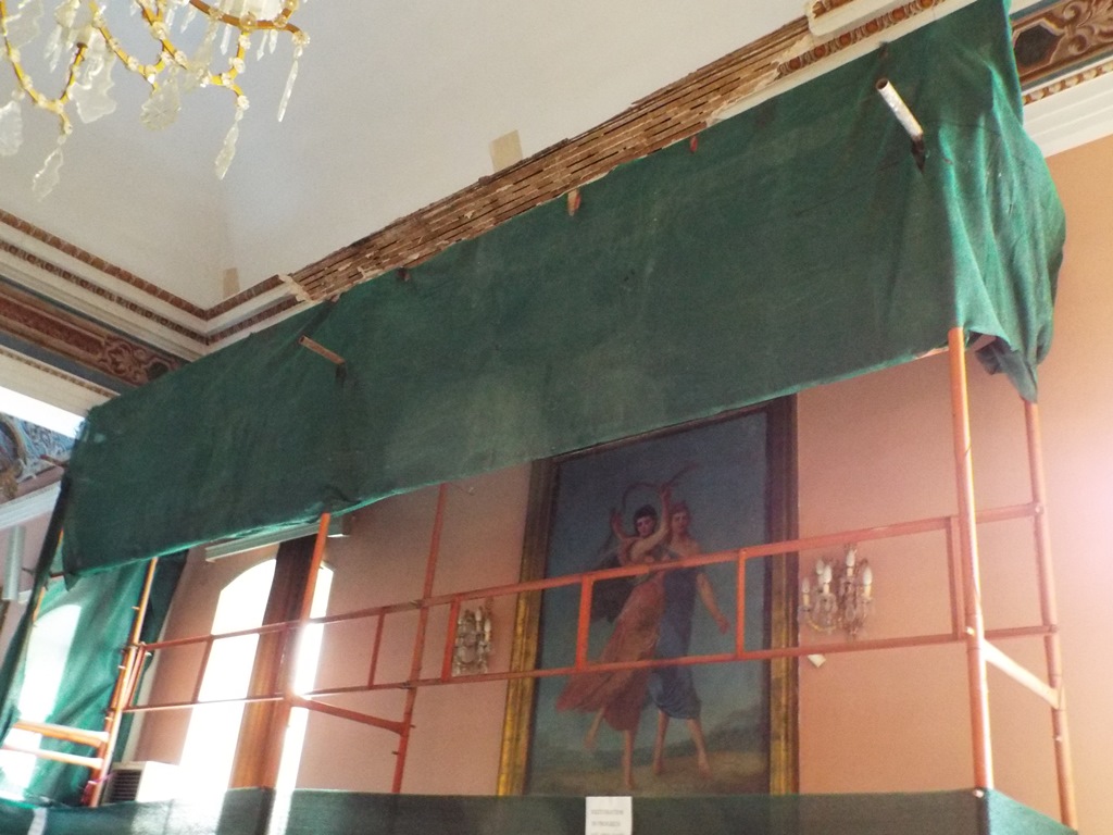 Οι εργασίες, για την επισκευή μέρους της οροφής της αίθουσας, καθώς είχε παρατηρηθεί εισροή ομβρίων υδάτων, φαίνεται να μην έχουν τέλος, καθώς περίπου 7 μήνες μετά την υπογραφή της σύμβασης, για εκπόνηση μελέτης, σχετικά με τη συντήρηση και την αποκατάσταση της ζωγραφικής φρίζας στην άνω ζώνη του τοίχου της αίθ. “Γιάννης Ρίτσος” του Πνευματικού Κέντρου, οι εργασίες φαίνεται να μην έχουν ακόμη ξεκινήσει.