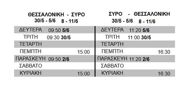 Σε ήπιες μεταβολές των ωρών αναχώρησης και άφιξης των πτήσεων της Astra Airlines που συνδέουν τη Σύρο με τη Θεσσαλονίκη προέβη η αεροπορική εταιρεία, γνωστοποιώντας προς το ενδιαφερόμενο επιβατικό κοινό τις αλλαγές από 30 Μαΐου έως και 12 Ιουνίου.