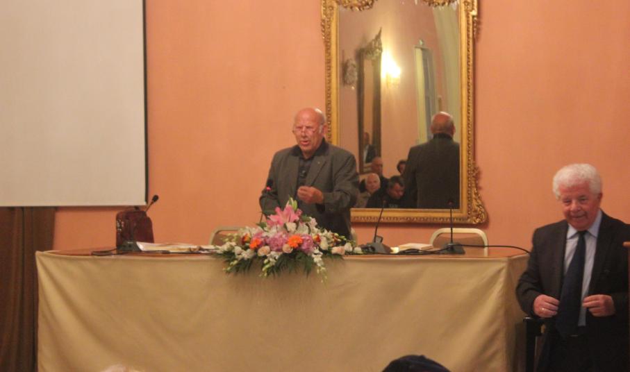 Στον σύντομο χαιρετισμό του, ο πρόεδρος του Συνδέσμου Ιωσήφ Σαλάχας αναφέρθηκε στο πολυσχιδή κοινωνική, θρησκευτική και πολιτιστική δράση του π. Μιχαήλ, στη σφαιρική επιστημονική κατάρτισή του, στη ρητορική ικανότητά του αλλά και στη δεξιοτεχνία του στην εναλλακτική πλοκή του λόγου.