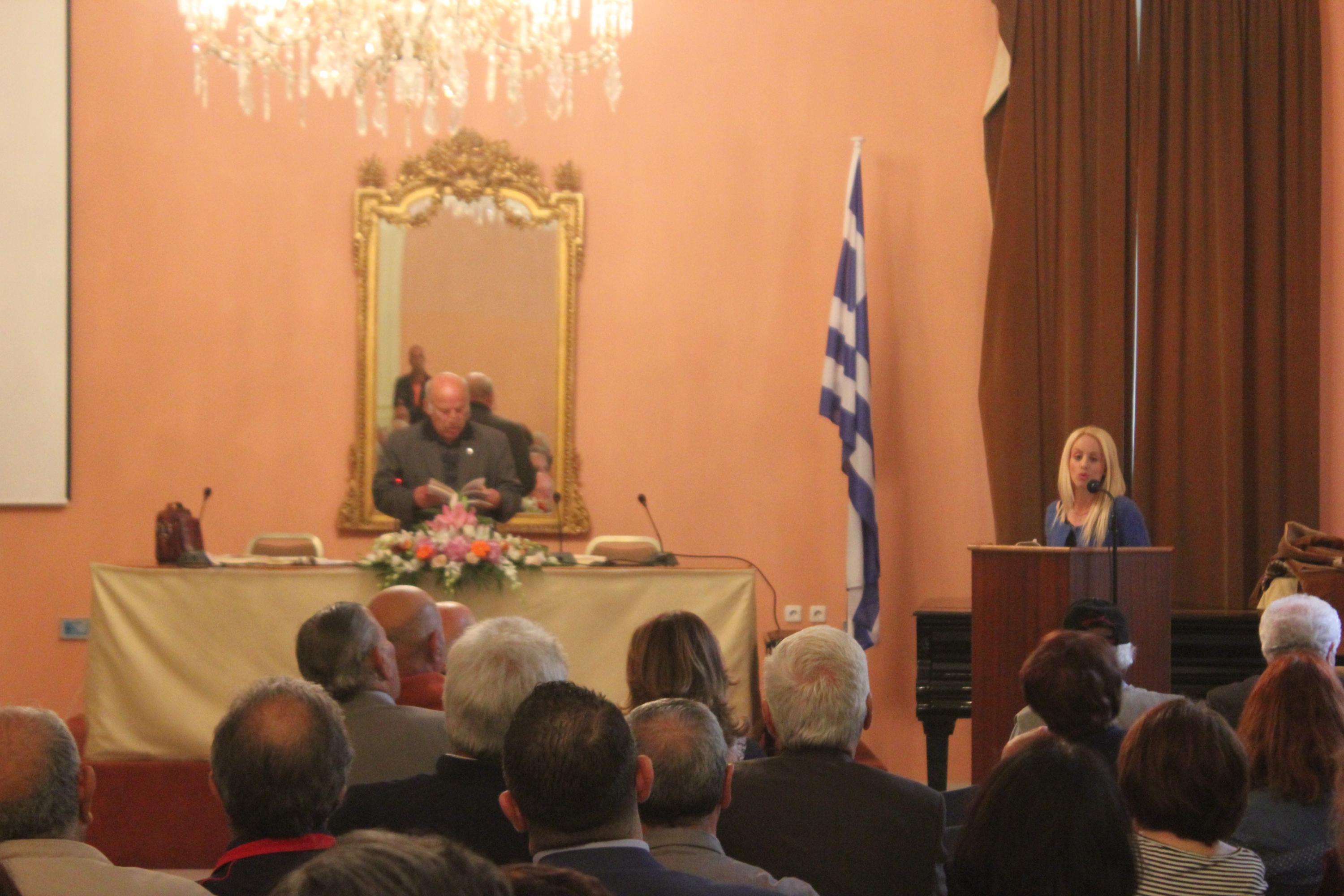 Στη συνέχεια, το λόγο έλαβε η Αντιδήμαρχος Πολιτισμού κ. Μενδρινού, εκφράζοντας την τιμή και τη χαρά της για την παρουσία του π. Μιχαήλ Ρούσσου, ενός ανθρώπου του πνεύματος και των γραμμάτων που έχει αφιερώσει τη ζωή του στη μελέτη, τη διδασκαλία των ανθρωπιστικών επιστημών. Όπως τόνισε, η ομιλία του με θέμα «Μαζί με τον Αντώνη Σαμαράκη, τον αιώνιο έφηβο, για να καλυτερέψουμε τον κόσμο», προσεγγίζει το έργο του μεγάλη Έλληνα λογοτέχνη που διακρίνεται για το έντονο στοιχείο της κοινωνικής καταγγελίας και αντικατοπτρίζει τις προσωπικές του ανησυχίες για το παρόν και το μέλλον της σύγχρονης κοινωνίας με αποτέλεσμα αυτό να γίνεται περισσότερο επίκαιρο από ποτέ. Καταλήγοντας, συνεχάρη τον Σύνδεσμο Ελλήνων Καθολικών Σύρου για τη διοργάνωση της εκδήλωσης, σημειώνοντας, πως δράσεις όπως αυτή προάγουν τη μοναδική μας κληρονομιά, μας φέρνουν σε επαφή με την πλούσια πνευματική πραμάτεια μας και μας καλούν να εμβαθύνουμε στην ουσία μέσα από τα μάτια των ανθρώπων του πνεύματος.