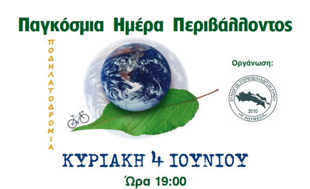Ο Σύλλογος Στερεοελλαδιτών Σύρου «η Ρούμελη» στο πλαίσιο των εκδηλώσεων για την Παγκόσμια Ημέρα Περιβάλλοντος, διοργανώνει την 7η Ποδηλατοδρομία.