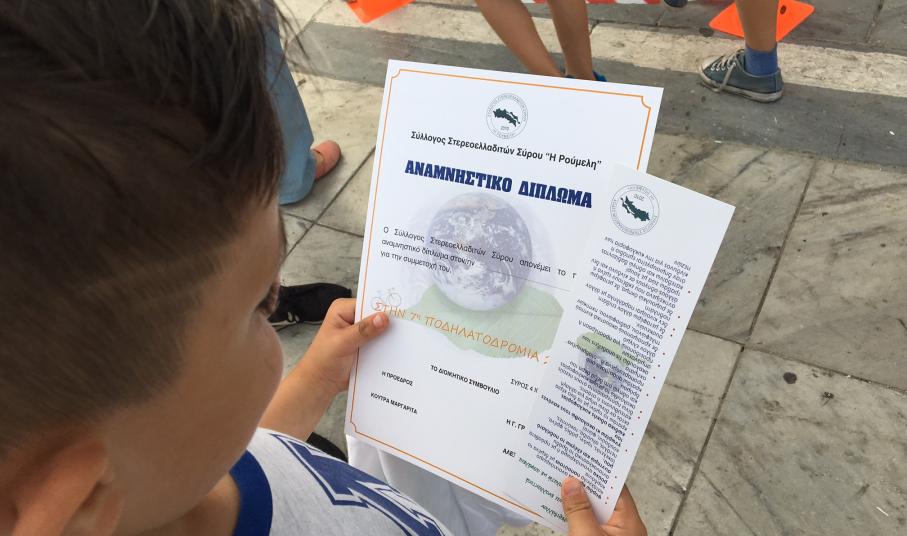 Μικροί και μεγάλοι ποδηλάτες “υπερασπιστές” του περιβάλλοντος ξεχύθηκαν στους δρόμους της Σύρου το απόγευμα της Κυριακής συμμετέχοντας με χαμόγελο στην 7η διοργάνωση Ποδηλατοδρομίας του Συλλόγου Στερεοελλαδιτών Σύρου “Η Ρούμελη”.