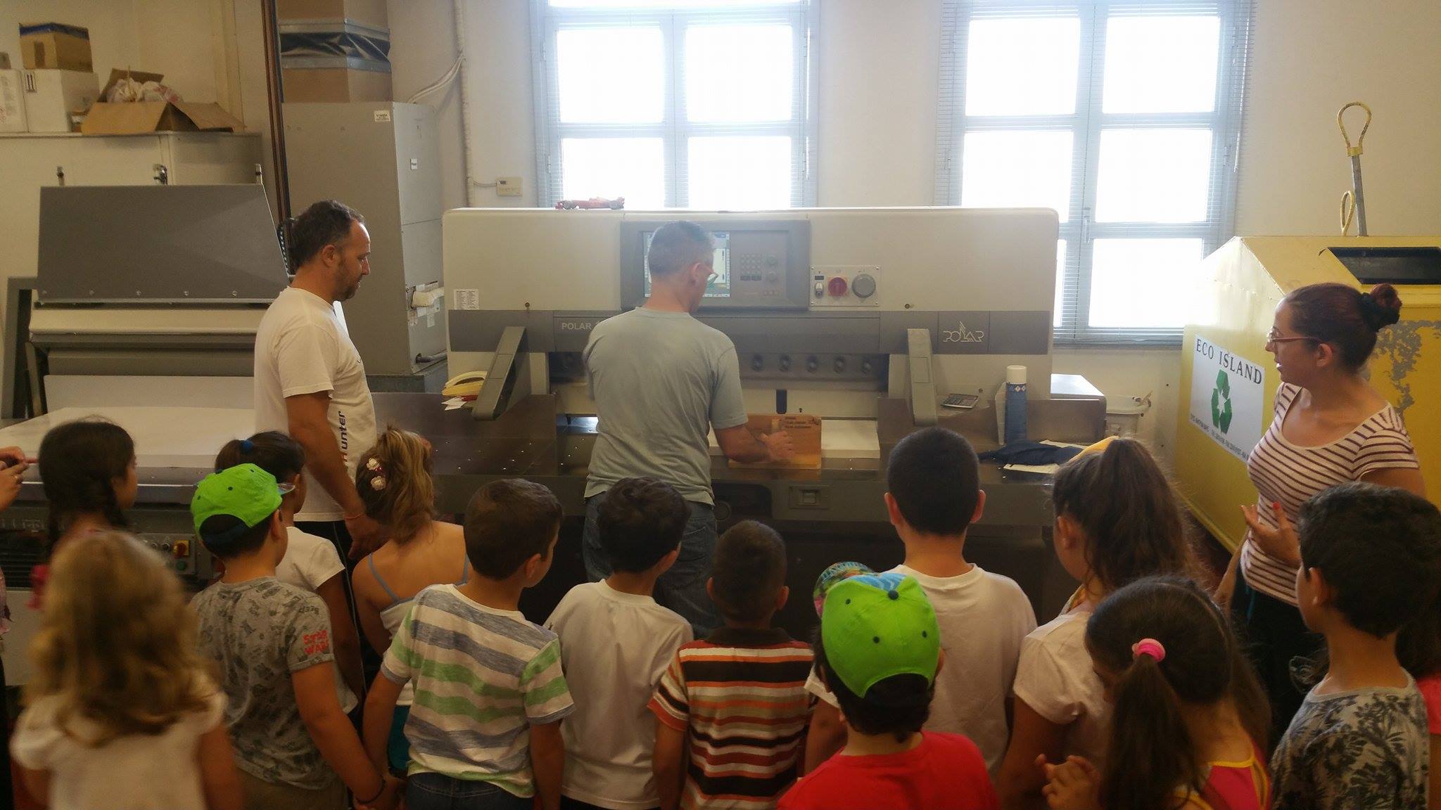 Στην τέχνη της Τυπογραφίας μυήθηκαν οι μικροί μαθητές του Τμήματος Β2 του 4ου Δημοτικού Σχολείου Ερμούπολης, στο πλαίσιο της εκπαιδευτικής επίσκεψής τους στη σύγχρονη εκτυπωτική μονάδα της Τυποκυκλαδικής στη Σύρο.