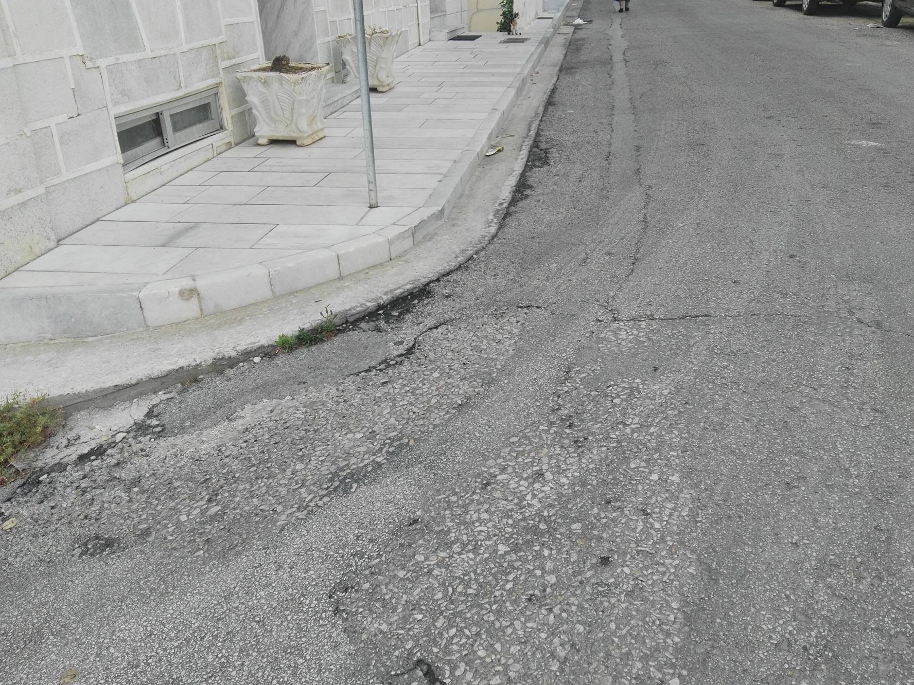 Λακκούβες, αποκόλληση τμημάτων και ανομοιομορφίες του οδοστρώματος παρατηρούνται κατά μήκος του δρόμου, με τον κ. Στρογγύλη να επισημαίνει πως, η συγκεκριμένη εικόνα, προδίδει προφανώς μη ύπαρξη ελέγχου από τη Δημοτική Αρχή, αλλά ακόμη και μη ικανοποιητική αποκατάσταση, σε περίπτωση που κάποιο έργο ανήκει στον Δήμο.