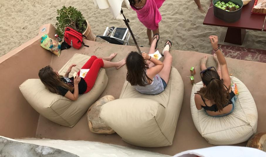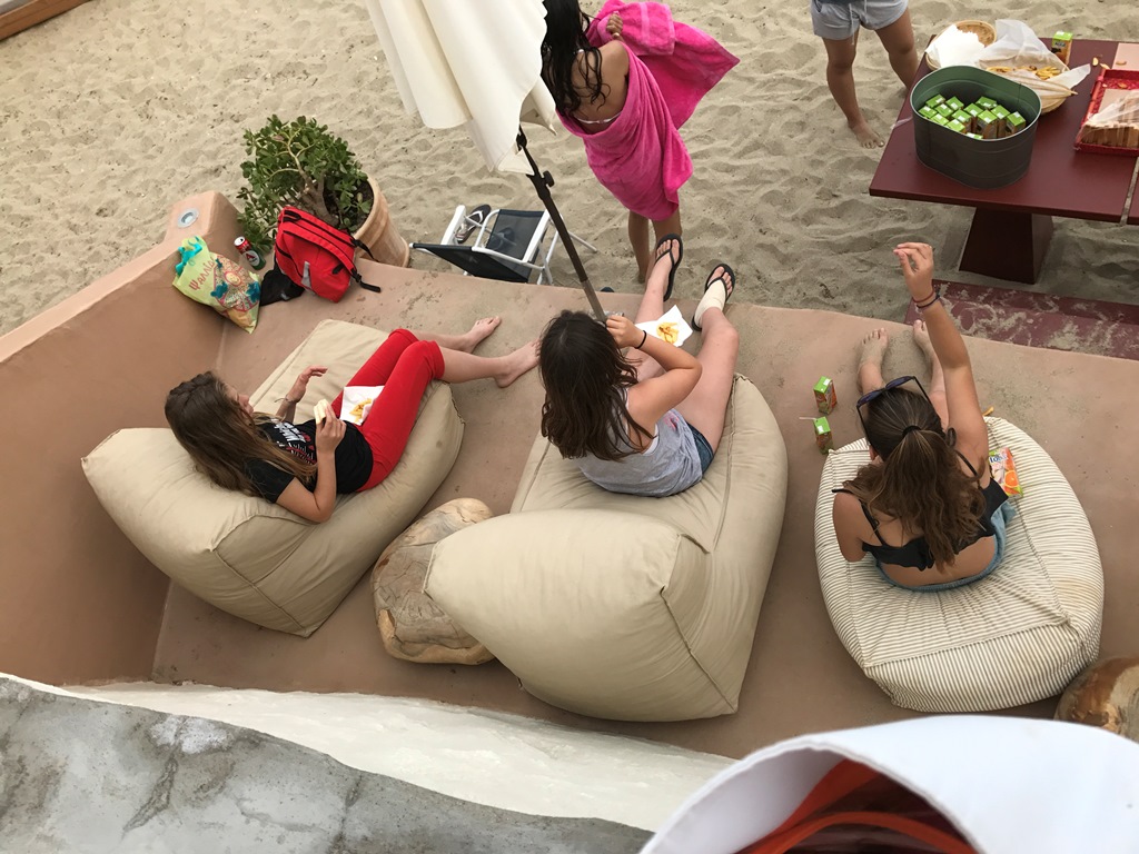Ο μουντός καιρός δεν στάθηκε εμπόδιο στην χαρά των παιδιών, ευχαριστήθηκαν μπάνιο και παιχνίδι και γέμισαν με ζωή την παραλία στις Αγκαθωπές. Δεν ήθελαν να φύγουν, ήξεραν πως θα είναι από τις τελευταίες φορές με αυτούς τους συμμαθητές, σ αυτή τη τάξη. Μετά το εξαντλητικό παιχνίδι η Λίνα πρόσφερε στους μαθητές, με τον δικό της μοναδικό τρόπο, τοστάκια, τηγανιτές πατάτες και χυμούς σ’ ένα τραπέζι που είχε τοποθετήσει δίπλα στη θάλασσα…