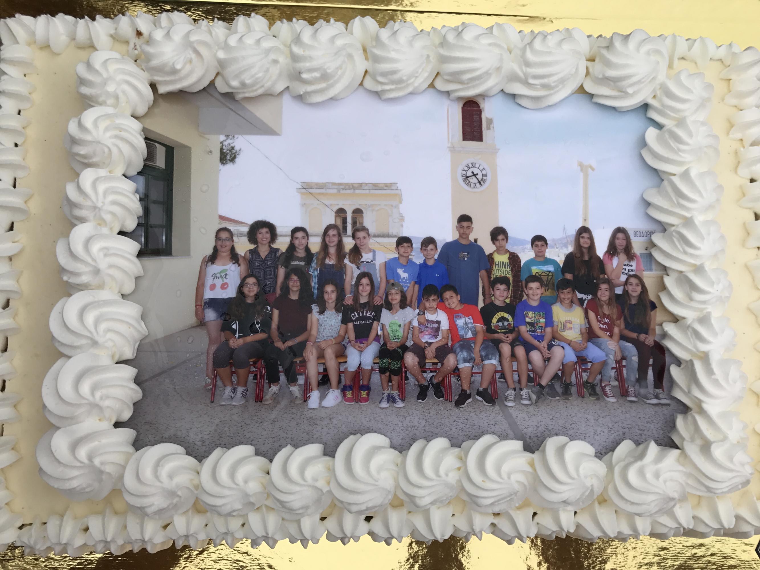Ακολούθησε η τούρτα με την φωτογραφία της τάξης που δόθηκε ως αναμνηστικό στην δασκάλα της τάξης την κ. Κατερίνα που δεν παρέλειπε να καυχιέται για όλους τους μαθητές της! Μια «υπέροχη τάξη» όπως λέει…