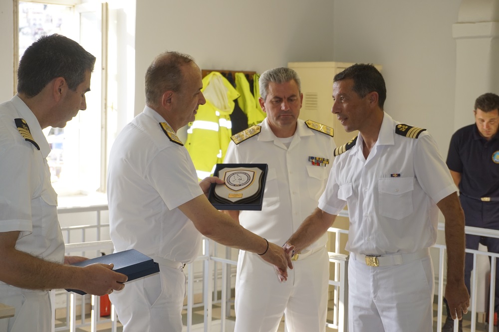 Τέλος, σε λιτή εκδήλωση εντός του Λιμεναρχείου Σύρου ο πρόεδρος της Ένωσης Προσωπικού Λιμενικού Σώματος Κυκλάδων ΒΑΜΒΑΚΟΥΣΗΣ Ιωάννης, εκ μέρους του Δ.Σ της Ένωσης και του λοιπού προσωπικού, απένειμε στον κ. Αρχηγό Λ.Σ-ΕΛ.ΑΚΤ Αντιναύαρχο Λ.Σ ΡΑΠΤΗ Σταμάτιο αναμνηστικό θυρεό της Ε.Π.Λ.Σ Κυκλάδων εκφράζοντας παράλληλα την ικανοποίησή του για το έμπρακτο ενδιαφέρον που επιδεικνύει για τις Κυκλάδες.
