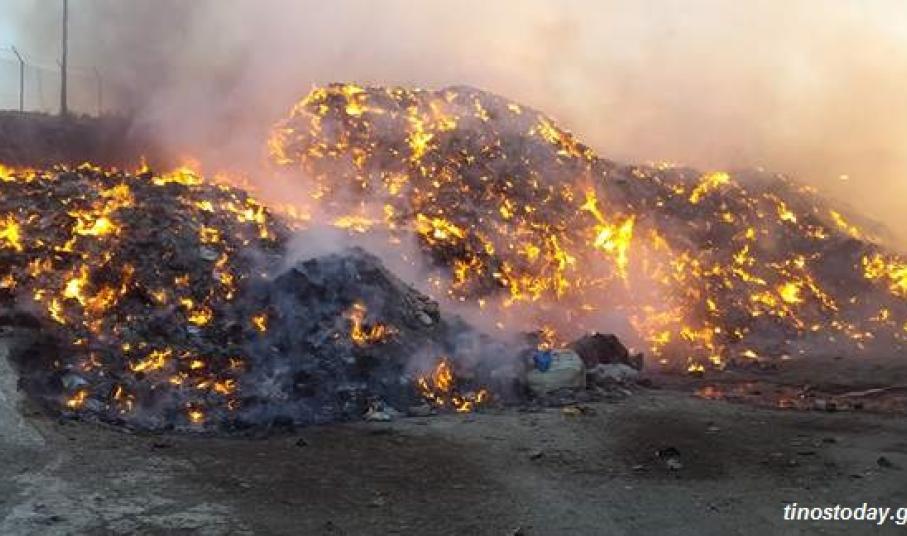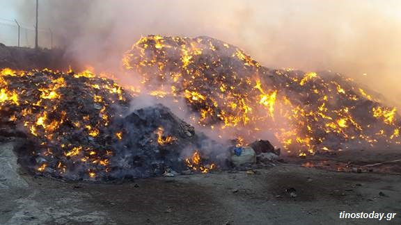 Μεγάλο προβληματισμό προκαλεί η πυρκαγιά, που έκαψε τόνους δεματοποιημένων απορριμμάτων, στην περιοχή «Κοσσίνι» της Τήνου, σε ό,τι αφορά τόσο στην περιβαλλοντική ρύπανση, από την καύση των αποβλήτων, όσο και στην απορρύθμιση της προγραμματισμένης αποκομιδής των απορριμμάτων από όλο το νησί, εν μέσω της κορύφωσης της καλοκαιρινής τουριστικής περιόδου.