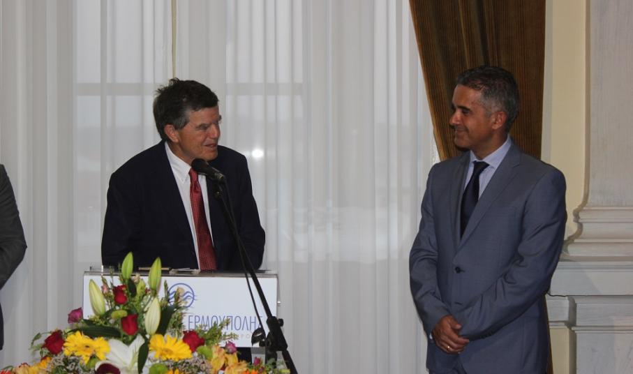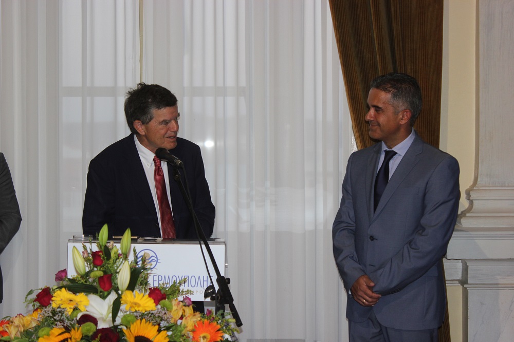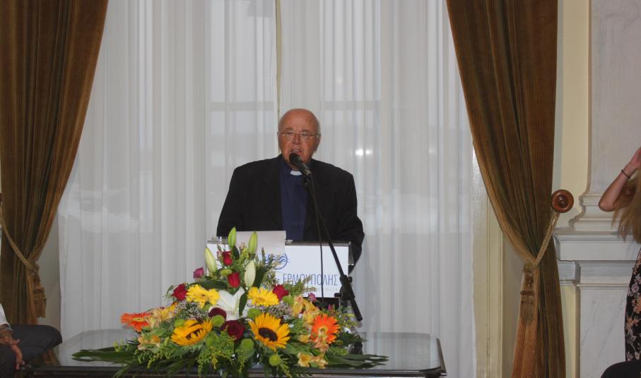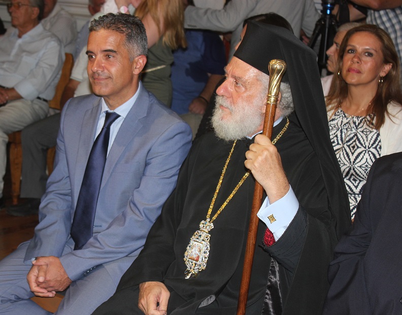 Η λιτή τελετή ολοκληρώθηκε με τους χαιρετισμούς του εκπροσώπου της Καθολικής Εκκλησίας, π. Αντώνη και της Περιφέρειας Ν. Αιγαίου, Μ. Δαδάου.