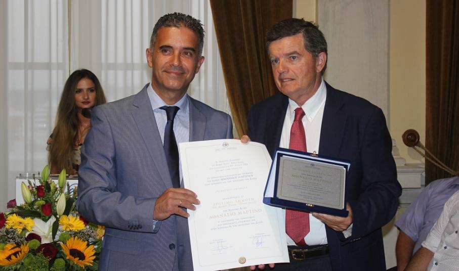Στο πλαίσιο μίας λιτής τελετής στην οποία παρευρέθηκε πλήθος επισήμων, καθώς επίσης αιρετών προσώπων, αλλά και απλών πολιτών της Σύρου, ο Δήμαρχος Σύρου – Ερμούπολης, Γιώργος Μαραγκός, κατόπιν της σχετικής απόφασης του δημοτικού συμβουλίου, προσέφερε την τιμητική πλακέτα προς τον κ. Μαρτίνο, προλογίζοντας περιεκτικά την πολύτιμη κοινωνική και φιλανθρωπική προσφορά του εδώ και πολλά έτη προς το κοινωνικό σύνολο.