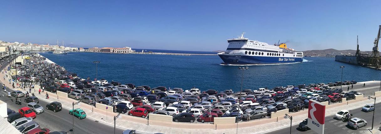 Με μία "θάλασσα" από αυτοκίνητα, έρχεται κανείς αντιμέτωπος, αντικρίζοντας το λιμάνι της Ερμούπολης αυτή την ώρα, καθώς το μεγάλο κύμα εκδρομέων του φετινού καλοκαιριού, ετοιμάζεται να αποχωρήσει με το μεσημβρινό δρομολόγιο.