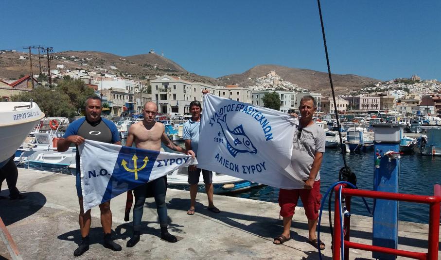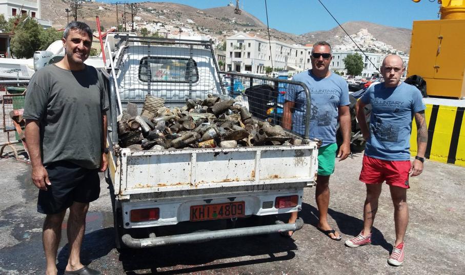 Αυτόνομοι και ελεύθεροι δύτες, με την στήριξη του Δημοτικού Λιμενικού Ταμείου Σύρου, του Δήμου Σύρου - Ερμούπολης, του καταστήματος ‘’DUST+ CREAM’’ καθάρισαν το βυθό.