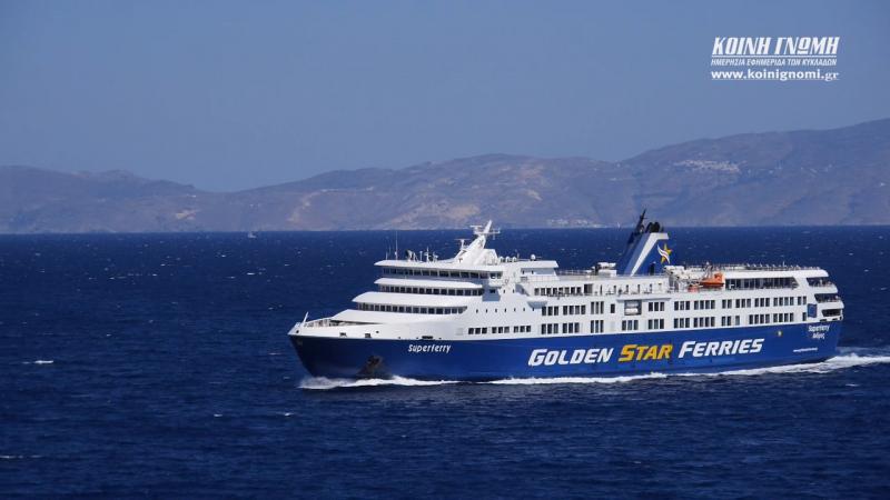 Το πρώτο δρομολόγιό του στη γραμμή “Πειραιάς – Σύρος – Τήνος – Μύκονος” εκτέλεσε σήμερα το πρωί το πλοίο Superferry της εταιρείας Golden Star Ferries, το οποίο και ανέλαβε την εξυπηρέτηση του επιβατικού κοινού μετά τις αλλαγές που προκλήθηκαν στις δρομολογιακές γραμμές από την προσάραξη του Blue Star Patmos στο λιμάνι της Ίου.