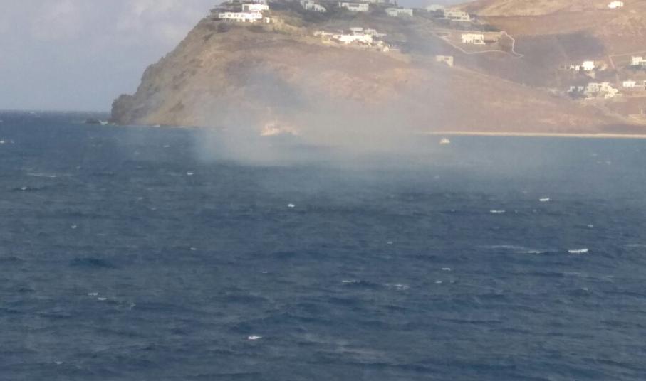 Στις φλόγες σκάφος έξω από το λιμάνι της Μυκόνου