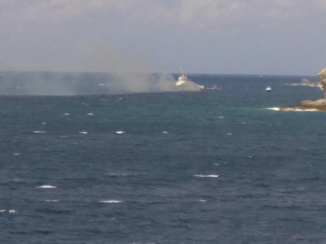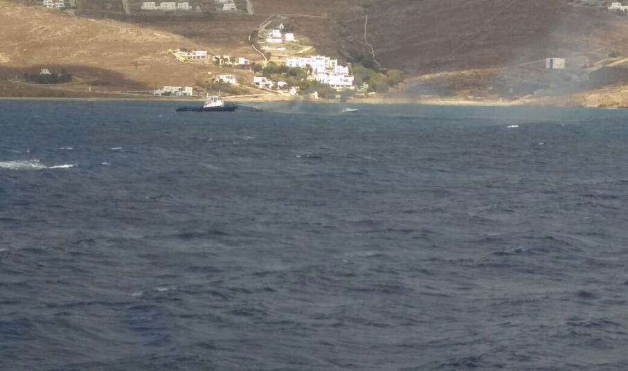 Άμεση ήταν η επέμβαση ρυμουλκού, το οποίο προσέγγισε το φλεγόμενο σκάφος για να θέσει υπό έλεγχο την κατάσταση.