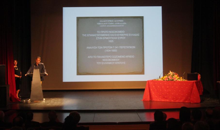 Η μοναδική, θαυμαστή και σε πολλούς άγνωστη ιστορία του Νοσοκομείου Σύρου, του πρώτου νοσοκομείου της επαναστατημένης και ελεύθερης Ελλάδας, που ιδρύθηκε και λειτούργησε το 1825, καταγράφεται, αναλύεται και τεκμηριώνεται στη διδακτορική διατριβή του ιατρού αναισθησιολόγου Νικόλαου Λειβαδάρα, που παρουσιάστηκε το βράδυ της Δευτέρας στο Θέατρο «Απόλλων».