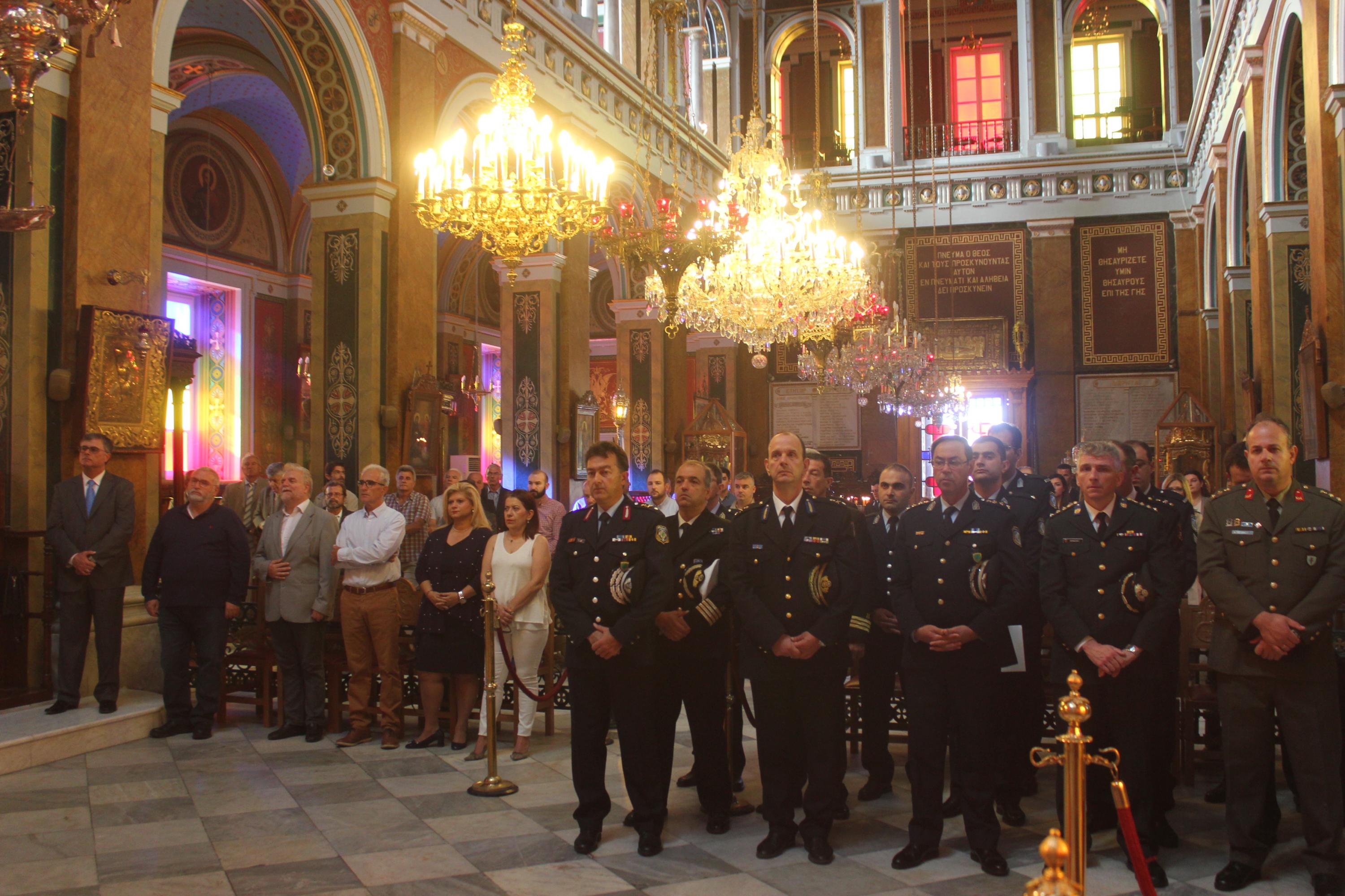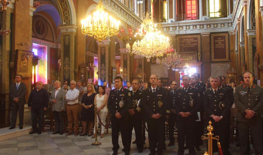 Στο πλαίσιο των εορταστικών εκδηλώσεων, τελέστηκε Θεία Λειτουργία στον Ιερό Ναό Αγίου Νικολάου Ερμουπόλεως, παρουσία του Βικάριου της Καθολικής Επισκοπής Σύρου π. Αντωνίου Βουτσίνου, εκπροσώπων των στρατιωτικών αρχών και των σωμάτων ασφαλείας, της Διοικήτριας του Γενικού Νοσοκομείου Σύρου Μαργαρίτας Μπουραντά, στελεχών της εκπαίδευσης, συνδικαλιστικών ενώσεων του αστυνομικού προσωπικού και ενώσεων αποστράτων.