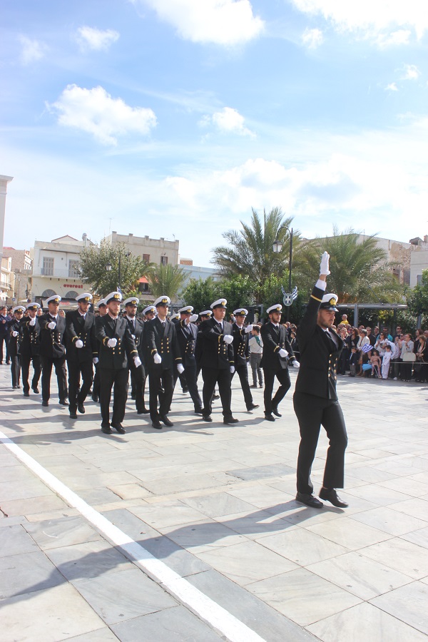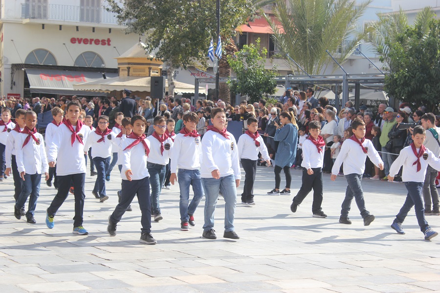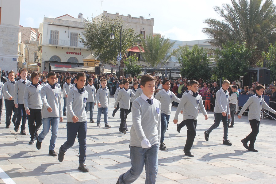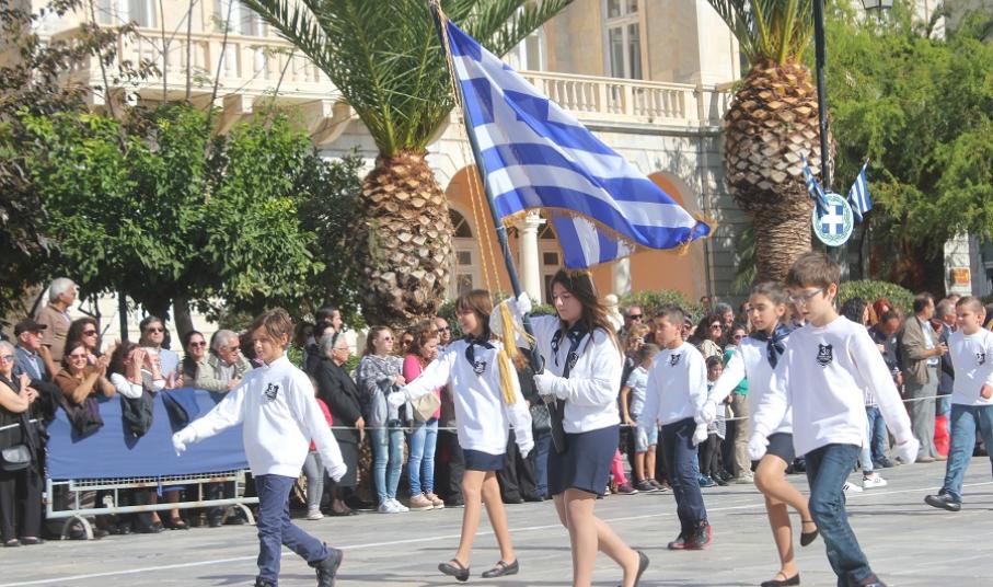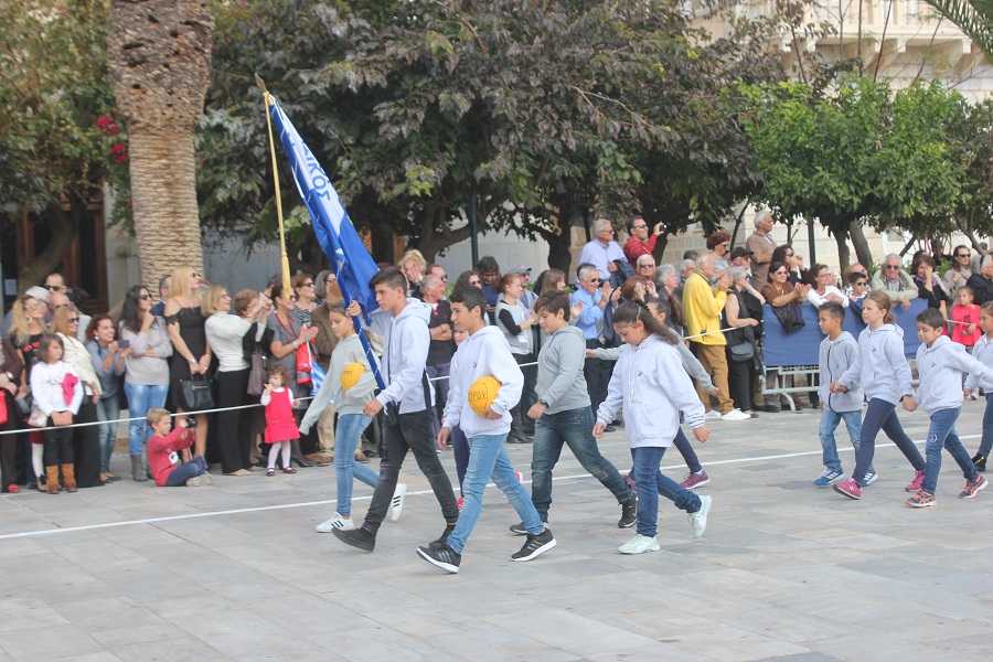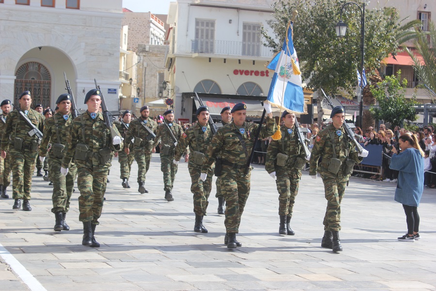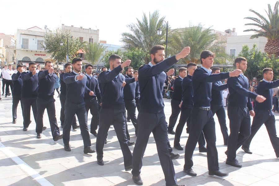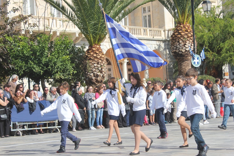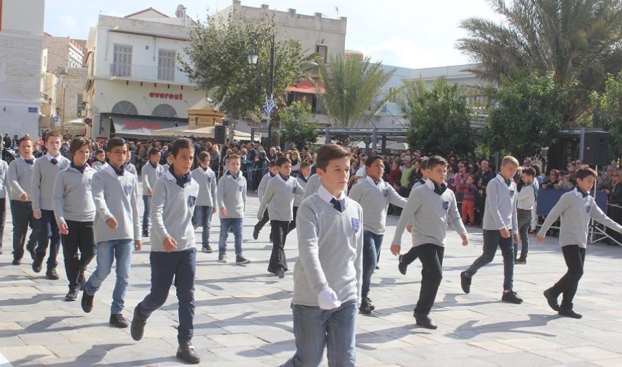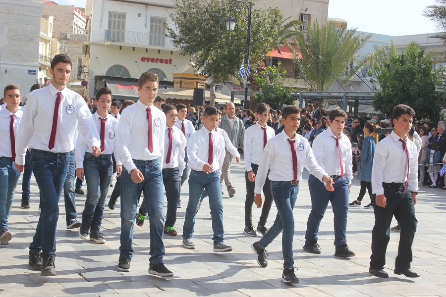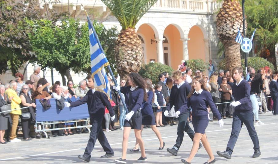 Το εγκάρδιο χειροκρότημα των πολιτών της Σύρου, οι οποίοι συνέρρευσαν στην Πλατεία Μιαούλη για την κορύφωση του εορτασμού της Εθνικής Επετείου της 28ης Οκτωβρίου, απέσπασαν μαθητές, σπουδαστές, πρόσκοποι, μέλη πολιτιστικών και αθλητικών συλλόγων, καθώς και διμοιρία του Τάγματος Εθνοφυλακής Ερμούπολης, κατά την πατροπαράδοτη παρέλαση.