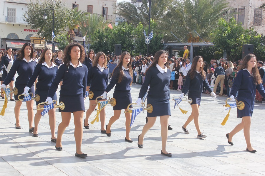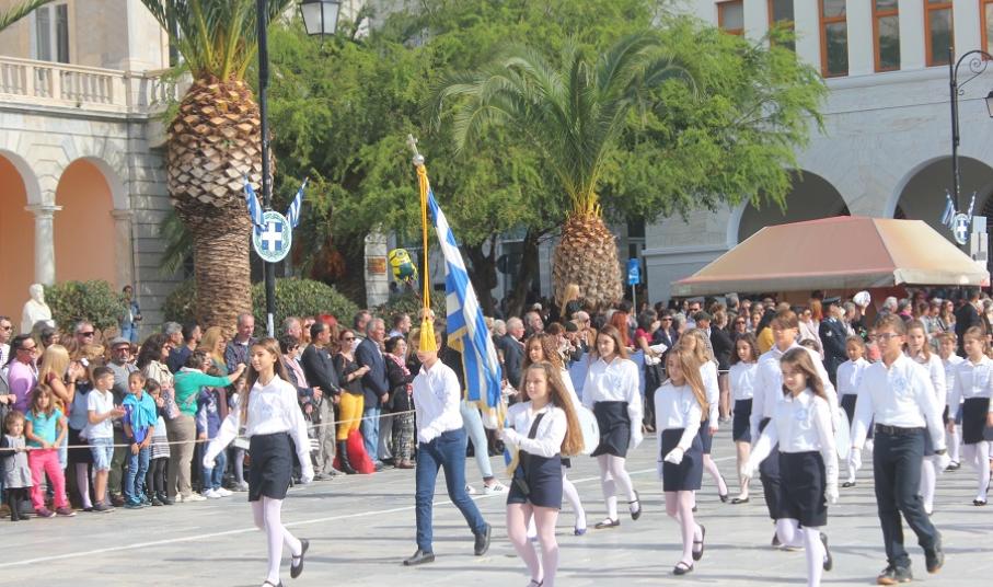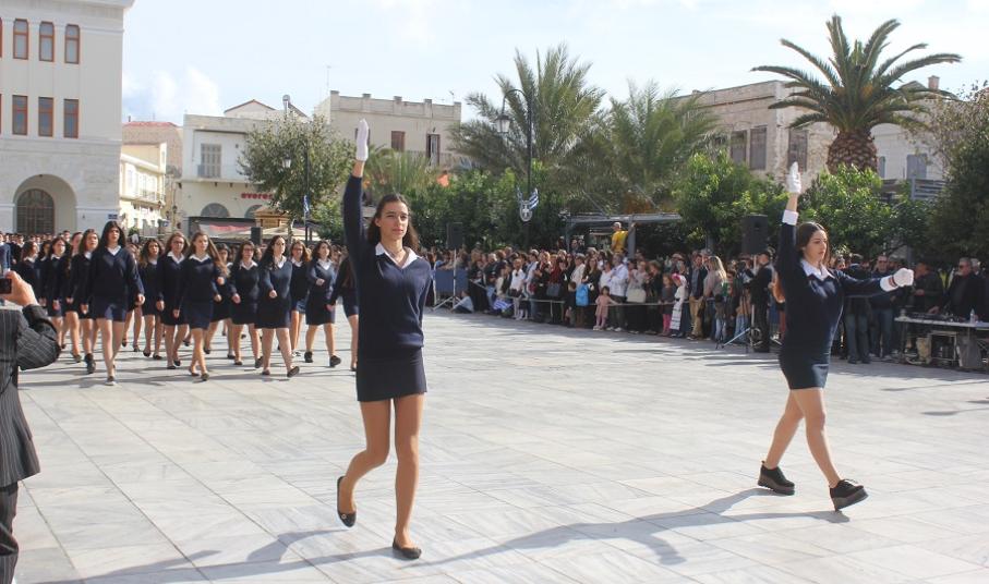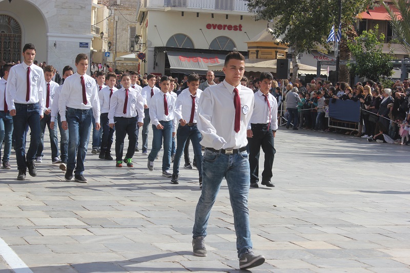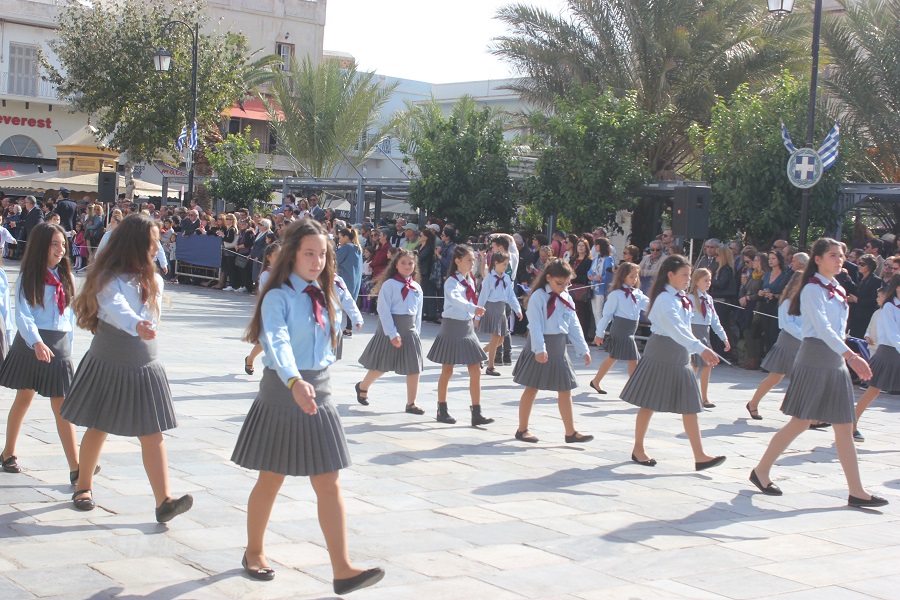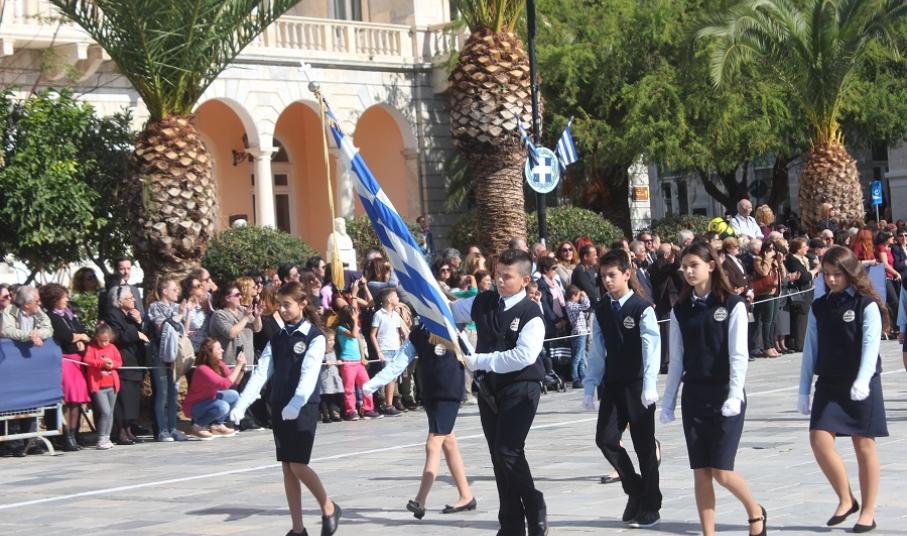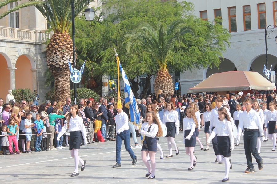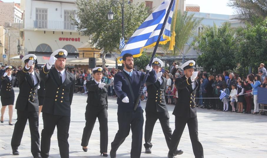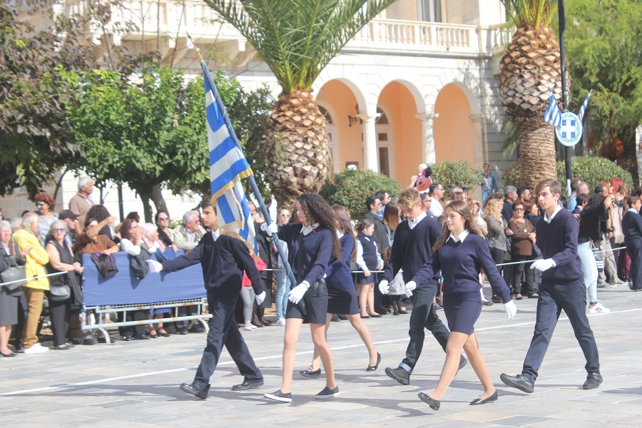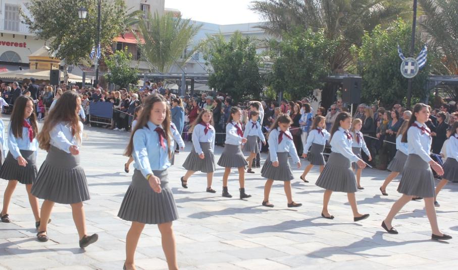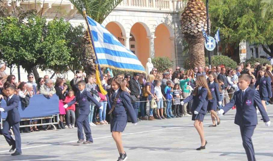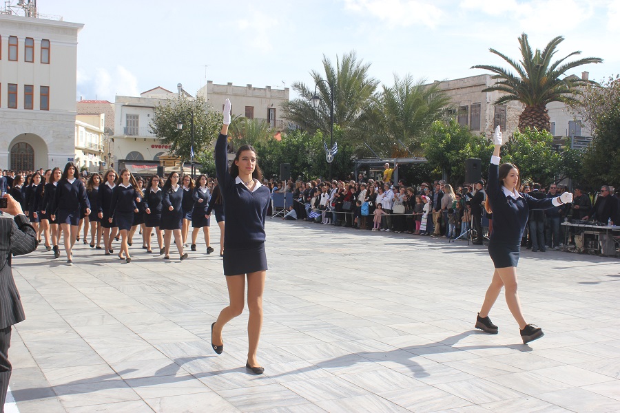 Το εγκάρδιο χειροκρότημα των πολιτών της Σύρου, οι οποίοι συνέρρευσαν στην Πλατεία Μιαούλη για την κορύφωση του εορτασμού της Εθνικής Επετείου της 28ης Οκτωβρίου, απέσπασαν μαθητές, σπουδαστές, πρόσκοποι, μέλη πολιτιστικών και αθλητικών συλλόγων, καθώς και διμοιρία του Τάγματος Εθνοφυλακής Ερμούπολης, κατά την πατροπαράδοτη παρέλαση.