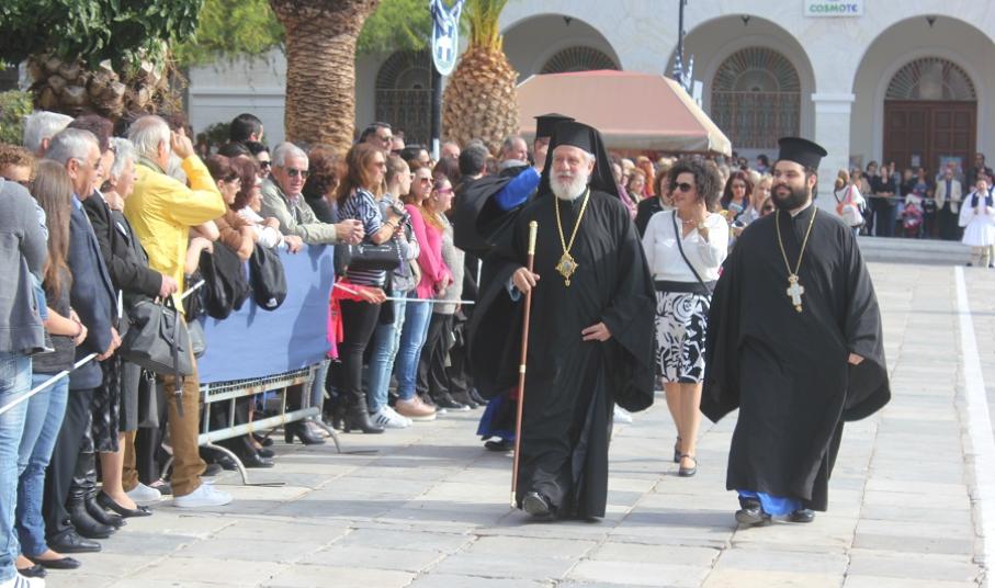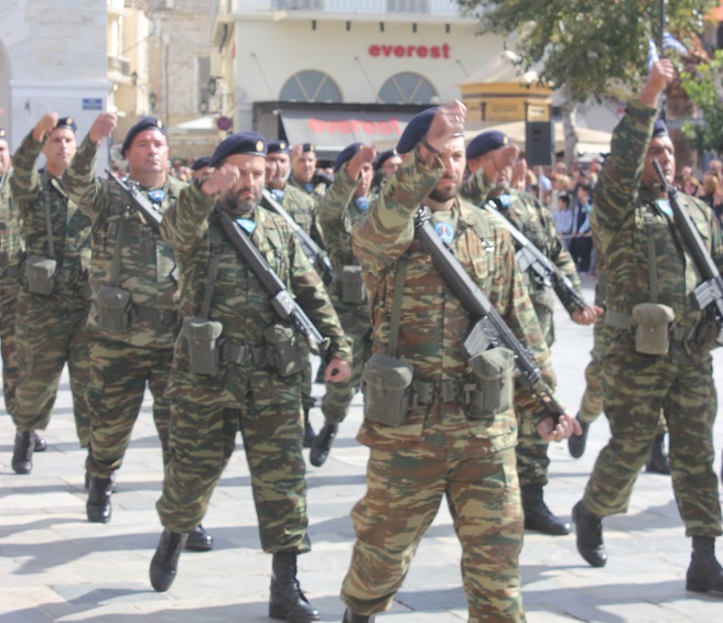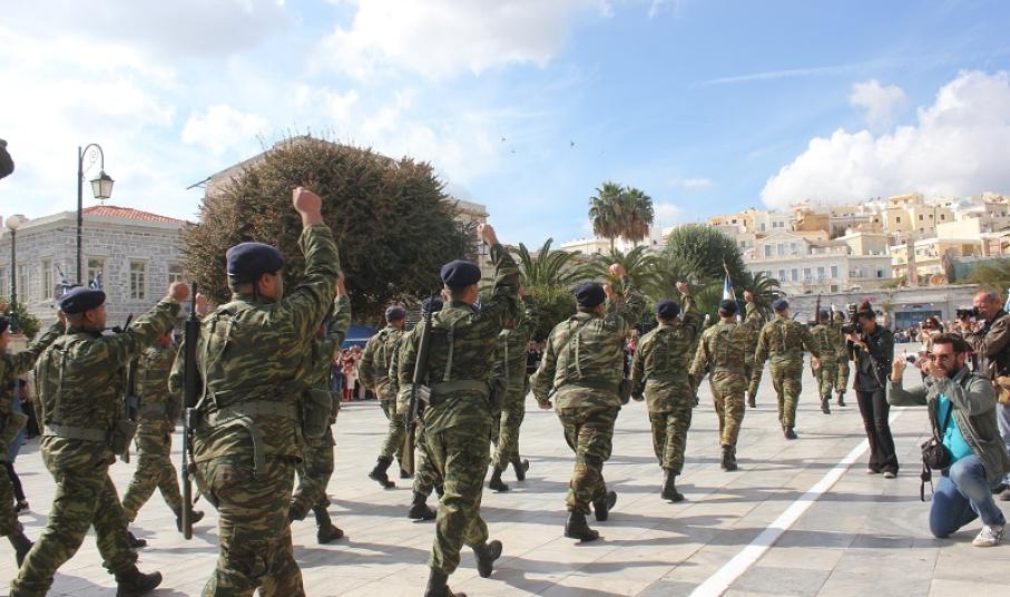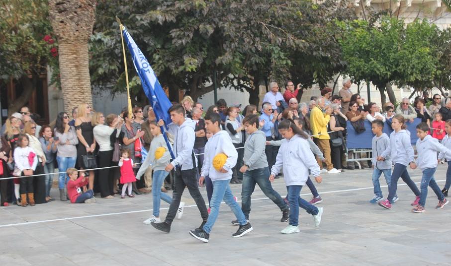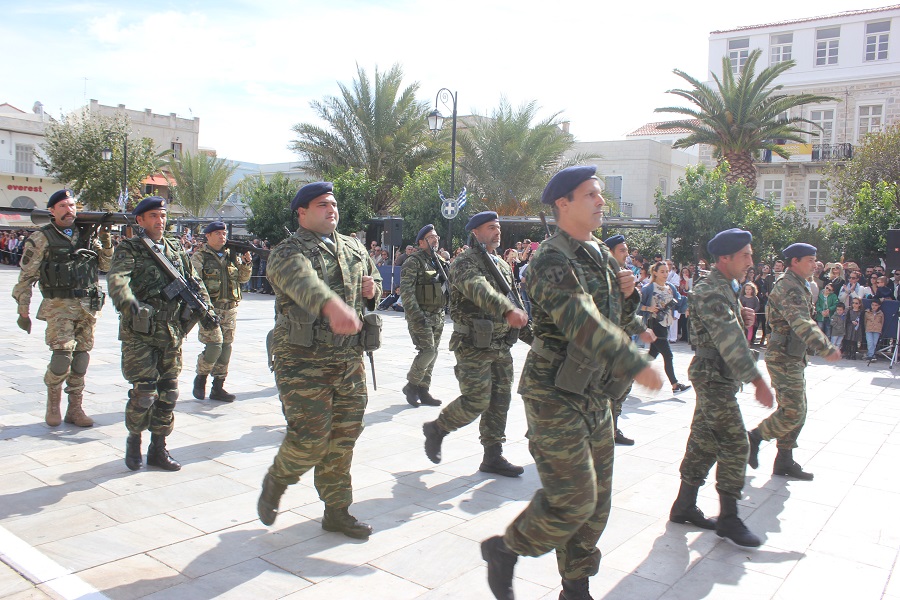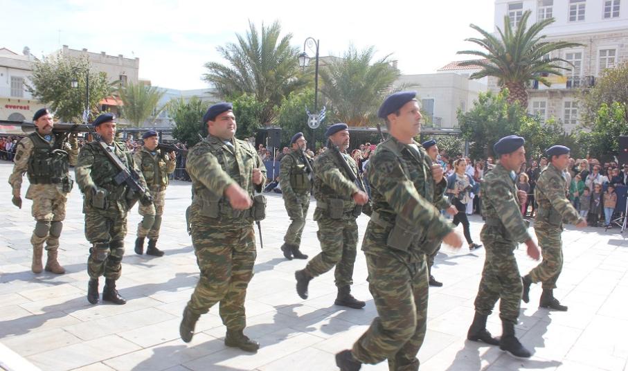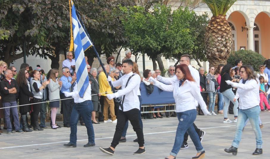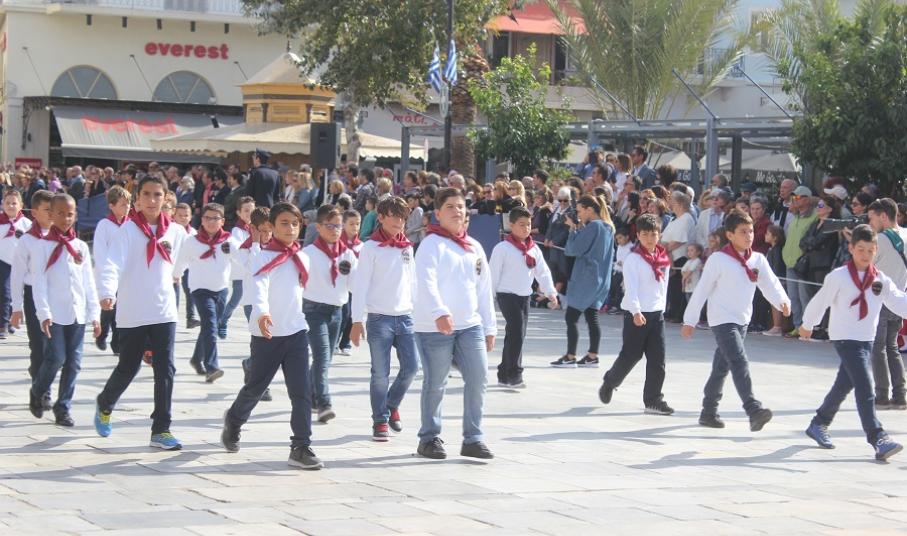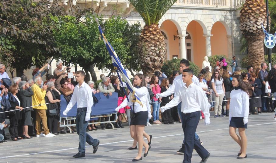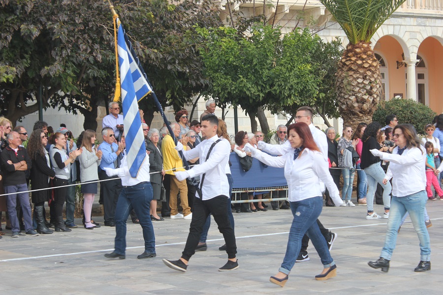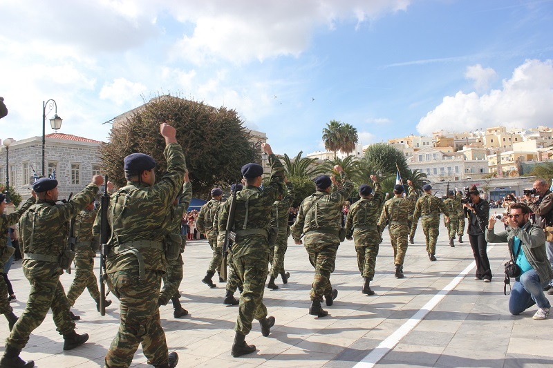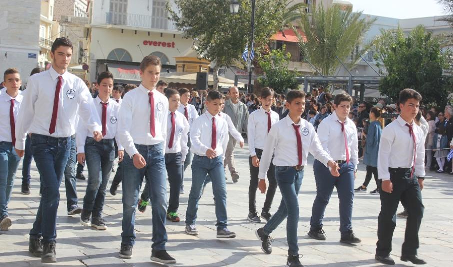 Το εγκάρδιο χειροκρότημα των πολιτών της Σύρου, οι οποίοι συνέρρευσαν στην Πλατεία Μιαούλη για την κορύφωση του εορτασμού της Εθνικής Επετείου της 28ης Οκτωβρίου, απέσπασαν μαθητές, σπουδαστές, πρόσκοποι, μέλη πολιτιστικών και αθλητικών συλλόγων, καθώς και διμοιρία του Τάγματος Εθνοφυλακής Ερμούπολης, κατά την πατροπαράδοτη παρέλαση.