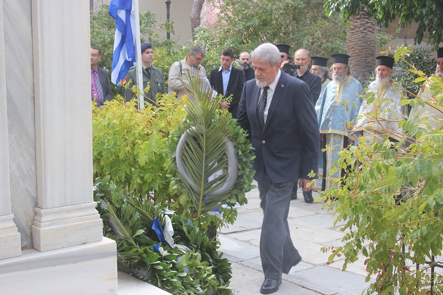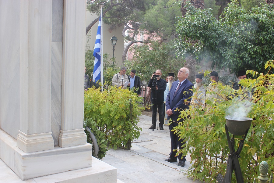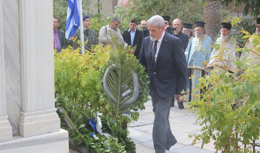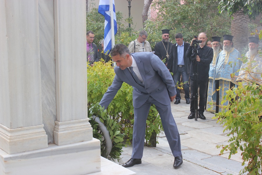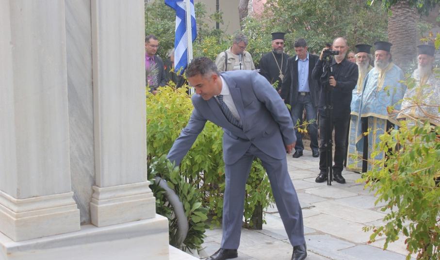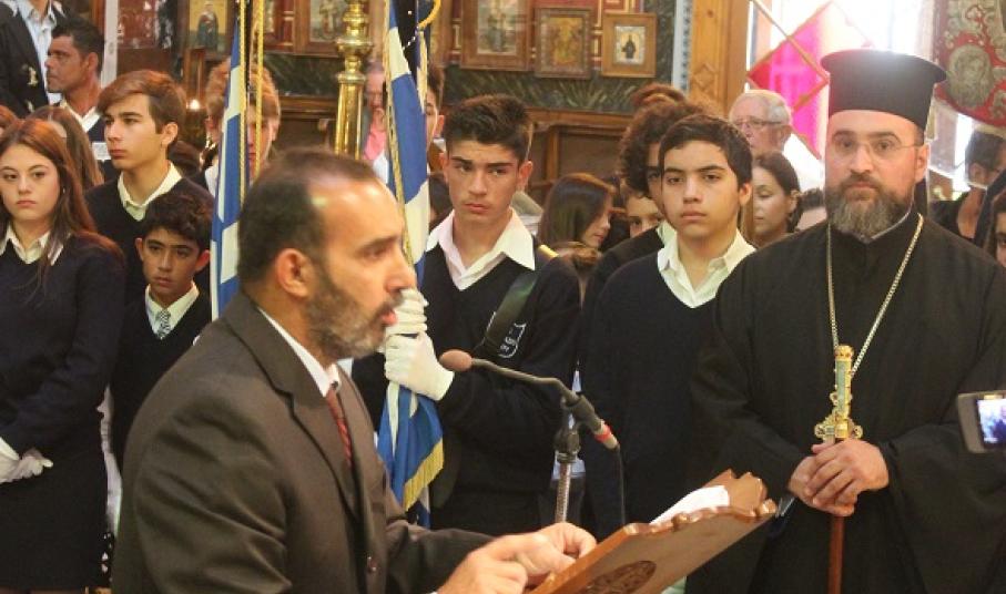 Στο πλαίσιο των προγραμματισμένων εκδηλώσεων, σήμερα το πρωί τελέστηκε στον Ιερό Ναό Αγίου Νικολάου Επίσημη Δοξολογία, χοροστατούντος του Σεβασμιωτάτου Μητροπολίτη Σύρου κ. Δωροθέου Β' και παρουσία μαθητικών αντιπροσωπειών, αιρετών και εκπροσώπων των τοπικών αρχών και των σωμάτων ασφαλείας, Μετά το πέρας της Δοξολογίας εκφωνήθηκε ο πανηγυρικός της ημέρας από τον Διευθυντή του 1ου Γυμνασίου Σύρου κ. Απόστολο Ποντίκα και ακολούθησε Επιμνημόσυνη Δέηση και κατάθεση στεφάνων στο Εθνικό Ηρώο της πόλης έναντι του Ιερού Ναού.