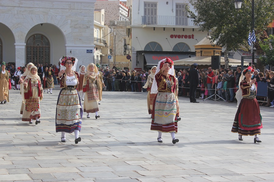 Αμέσως μετά την παρέλαση, ακολούθησαν παραδοσιακοί χοροί από χορευτικά τμήματα του Λυκείου Ελληνίδων Σύρου στην πλατεία Μιαούλη.