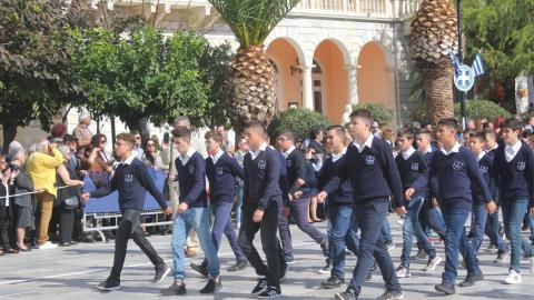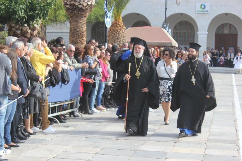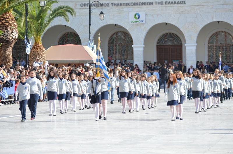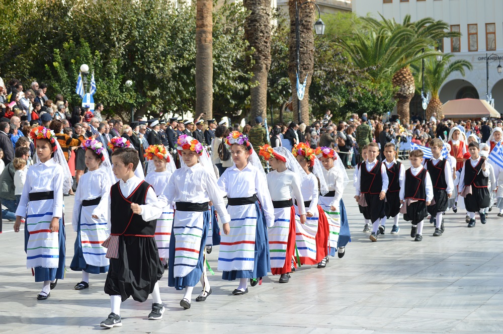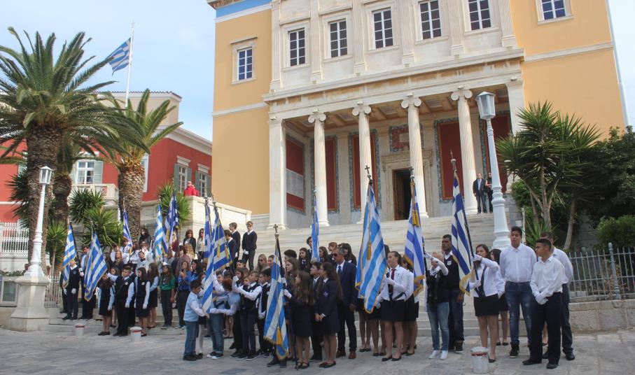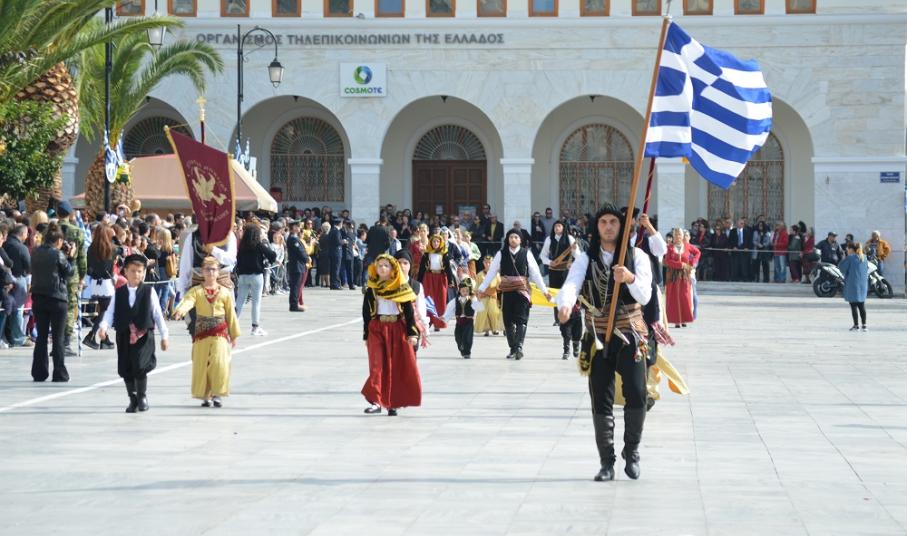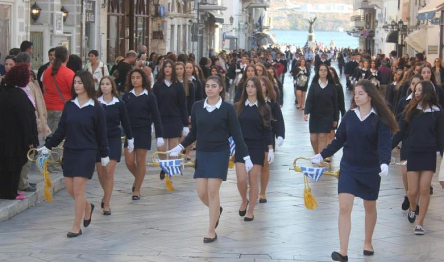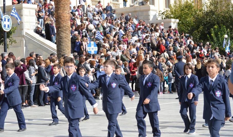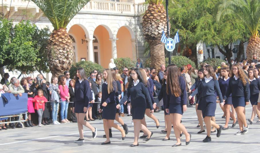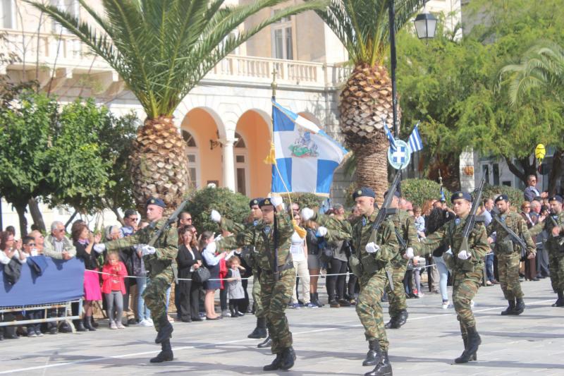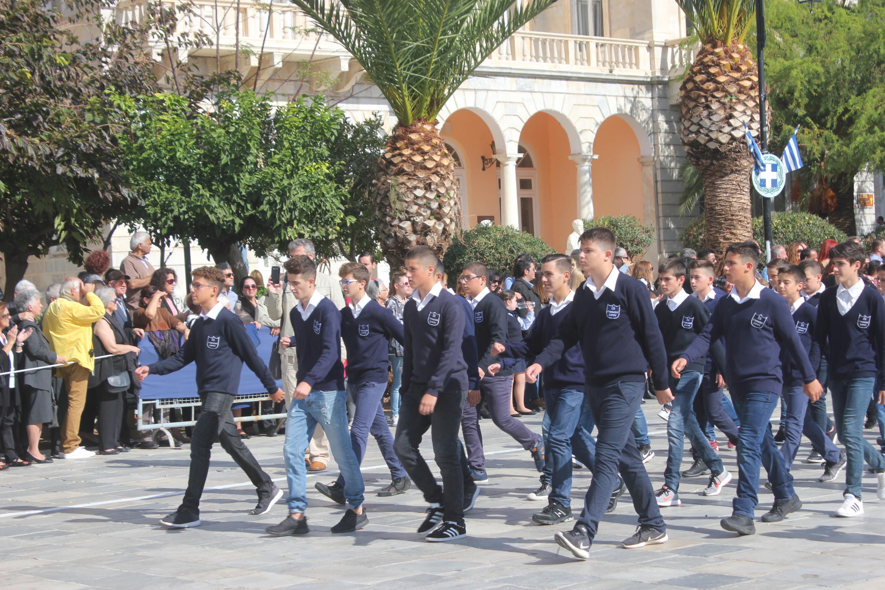 Το εγκάρδιο χειροκρότημα των πολιτών της Σύρου, οι οποίοι συνέρρευσαν στην Πλατεία Μιαούλη για την κορύφωση του εορτασμού της Εθνικής Επετείου της 28ης Οκτωβρίου, απέσπασαν μαθητές, σπουδαστές, πρόσκοποι, μέλη πολιτιστικών και αθλητικών συλλόγων, καθώς και διμοιρία του Τάγματος Εθνοφυλακής Ερμούπολης, κατά την πατροπαράδοτη παρέλαση.