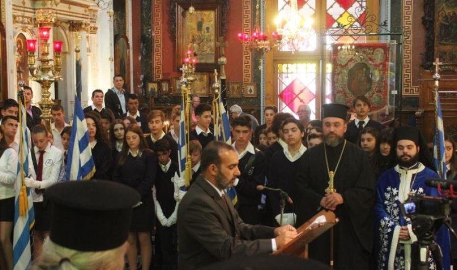 Μετά το πέρας της Δοξολογίας εκφωνήθηκε ο πανηγυρικός της ημέρας από τον Διευθυντή του 1ου Γυμνασίου Σύρου κ. Απόστολο Ποντίκα, ο οποίος υπογράμμισε το χρέος των Ελλήνων να μην ξεχνούν τον αγώνα και την αντίσταση των Ελλήνων του 1940 ενάντια στον φασισμό, σημειώνοντας πως «οι λαοί που ξεχνούν, στα σταδιακά χάνουν τις ιστορικές μνήμες τους και μοιραία εξαφανίζονται από τον παγκόσμιο πολιτικό χάρτη».