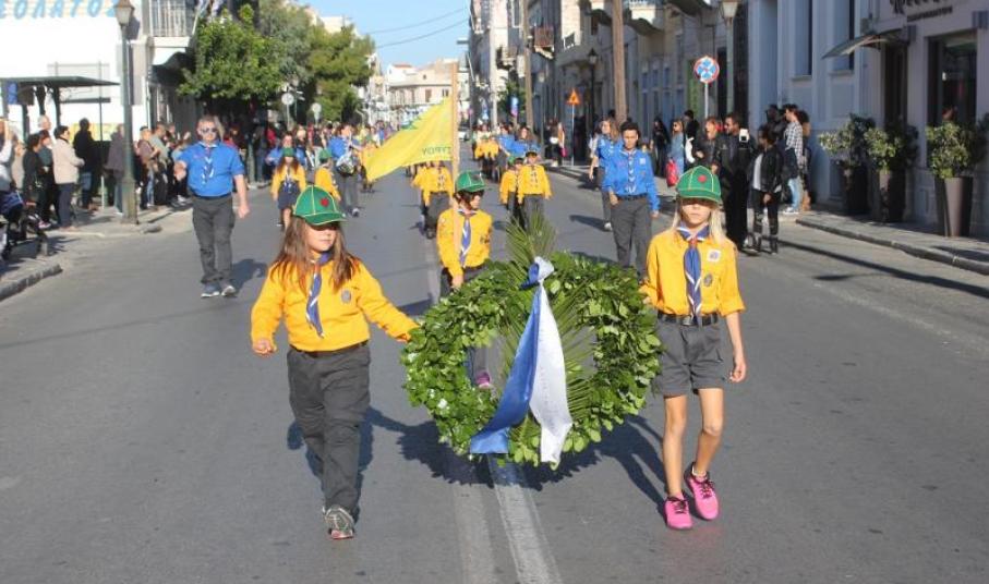 Μαθητές, σπουδαστές και μέλη του Σώματος Προσκόπων Σύρου απέτισαν φόρο τιμής στον ελληνικό λαό που δε δίστασε να ορθώσει ανάστημα απέναντι στον εχθρό, βροντοφωνάζοντας “ΟΧΙ”.