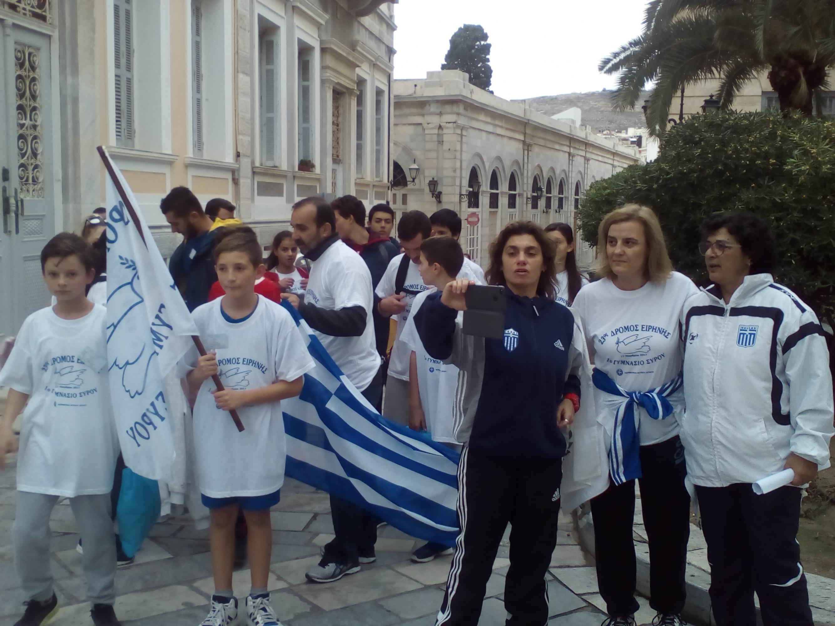 Ο 23ος Δρόμος Ειρήνης, που διοργανώθηκε από το 1ο Γυμνάσιο Σύρου σε συνεργασία με την Περιφέρεια Νοτίου Αιγαίου, στο πλαίσιο των σχολικών εκδηλώσεων μνήμης για τα ιστορικά γεγονότα του Πολυτεχνείου και την επακόλουθη βάρβαρη εισβολή του Αττίλα στη μαρτυρική Κύπρο, διεξήχθη με επιτυχία το περασμένο Σάββατο, παρά τις δύσκολες καιρικές συνθήκες, οι οποίες δεν επέτρεψαν τη συμμετοχή περισσότερων δρομέων.