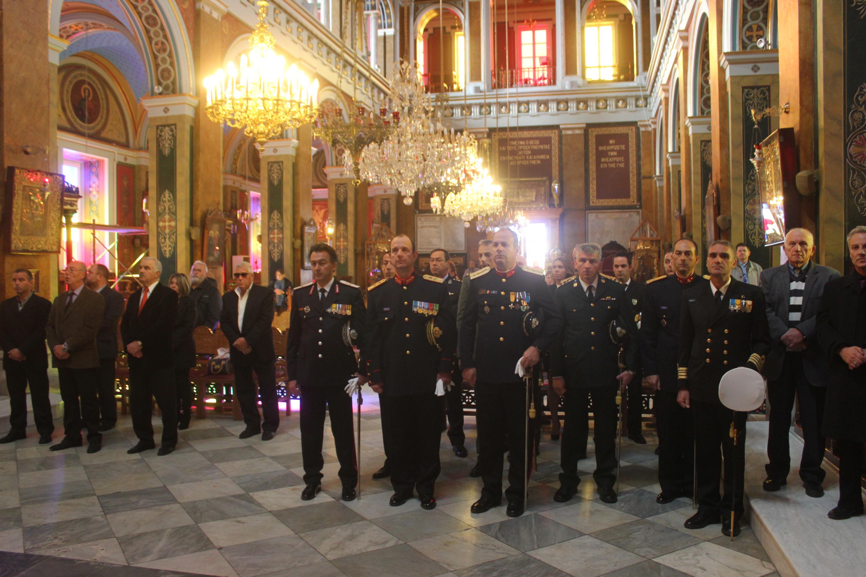 Στο πλαίσιο του χθεσινού εορτασμού, τελέστηκε το πρωί Επίσημη Δοξολογία στον Ιερό Ναό του Αγίου Νικολάου στην Ερμούπολη, παρουσία αξιωματικών κα στελεχών των Ενόπλων Δυνάμεων, των Σωμάτων Ασφαλείας, εκπροσώπων επιστημονικών φορέων, δικαστικών και πολιτικών αρχών, αλλά και πολιτών.