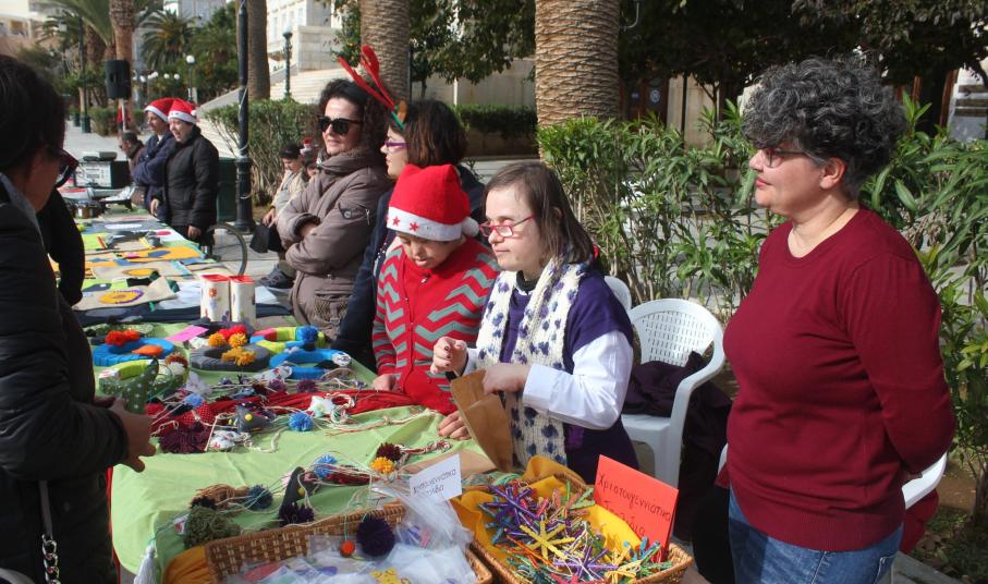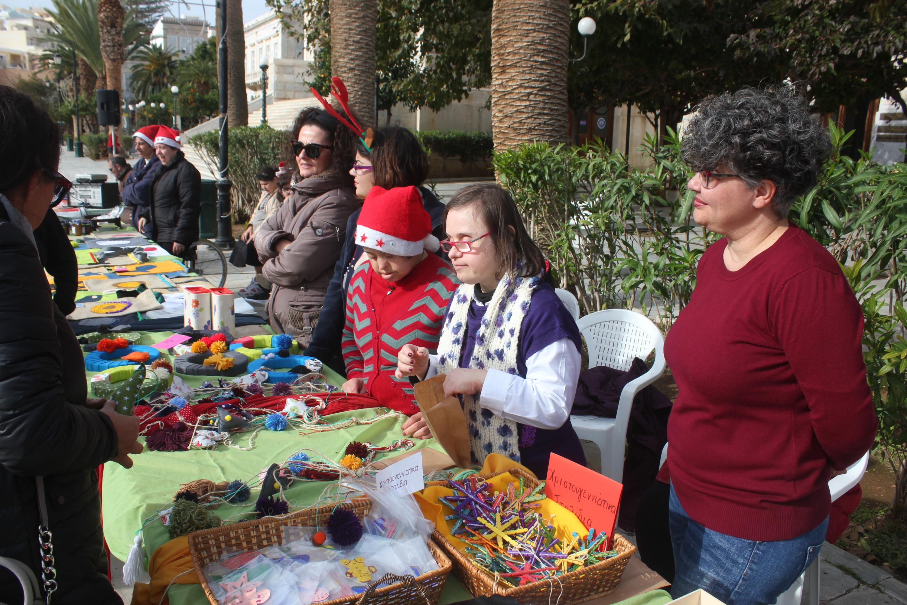 Το παζάρι του Κέντρου Δημιουργικής Απασχόλησης Παιδιών με Αναπηρία της Σύρου πραγματοποιήθηκε σήμερα το πρωί στην Πλατεία Μιαούλη, με την ευκαιρία της Παγκόσμιας Ημέρας Ατόμων Με Αναπηρία, η οποία εορτάζεται στις 3 Δεκεμβρίου.