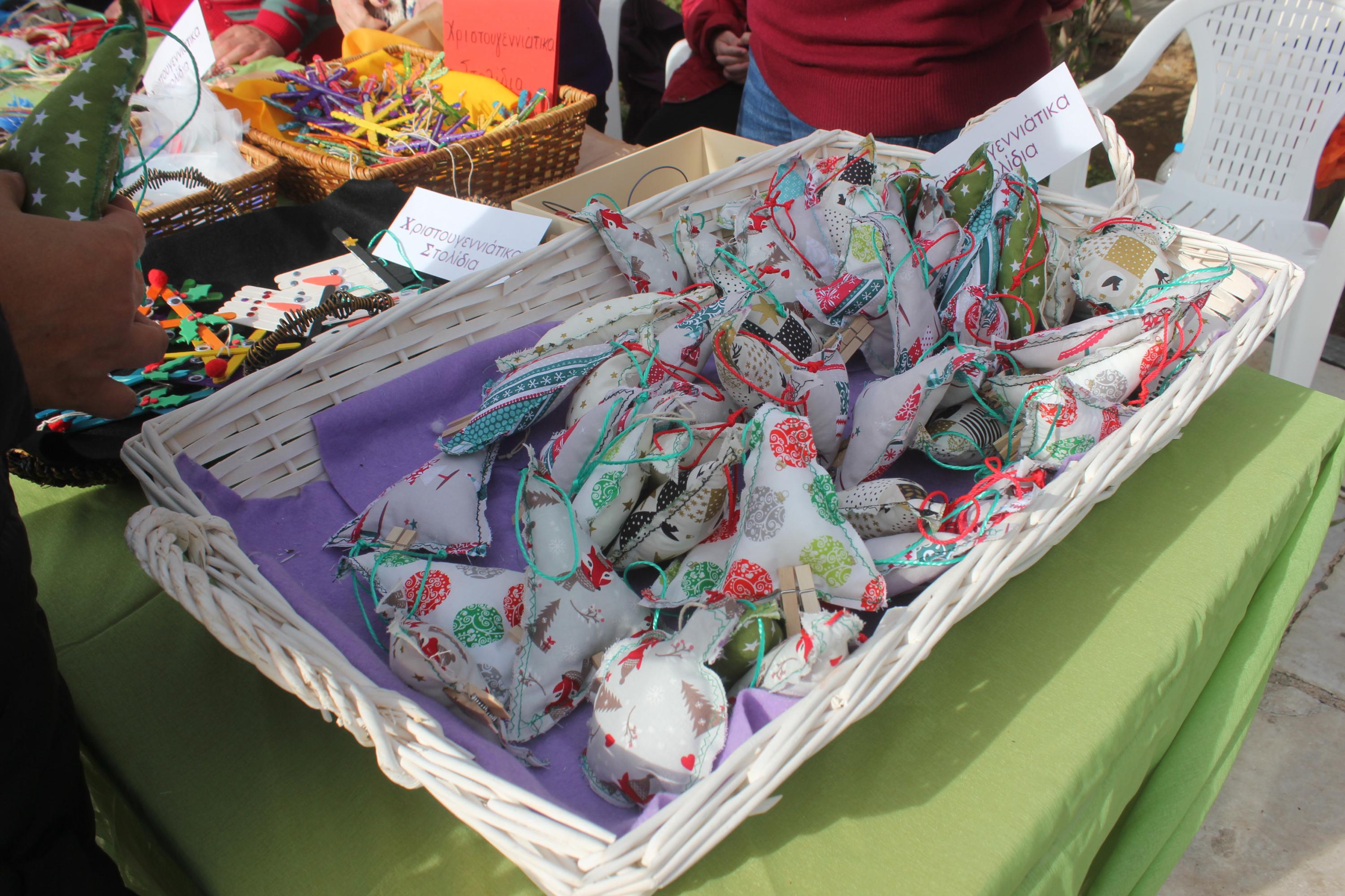 Οι επισκέπτες είχαν την ευκαιρία να βρουν κηραλοιφές, μαρμελάδες, τσάντες με πλεκτά μοτίβα, στολίδια για το χριστουγεννιάτικο δέντρο, στεφάνια για το δέντρο, μαρμαράκια με την τεχνική του decoupage, γιρλάντες και πολλά ακόμα χειροποίητα προϊόντα.