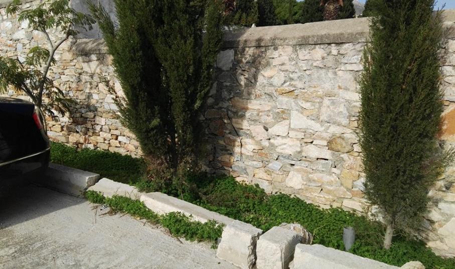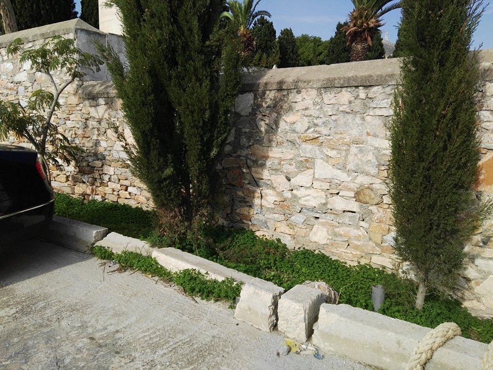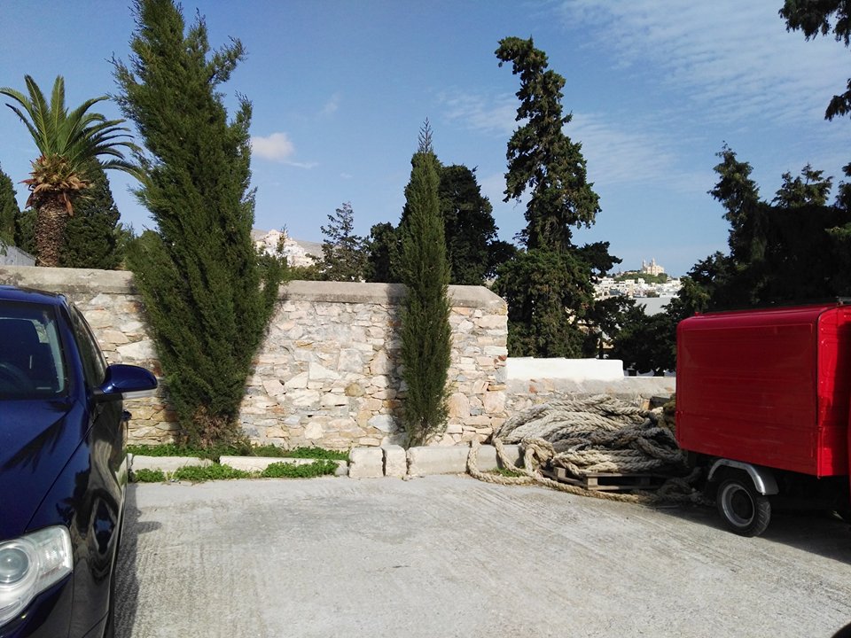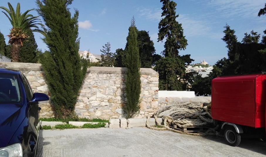Και το πρόβλημα δε σταματάει εδώ. Λόγω της συστηματικής ρίψης όγκου υλικών όπως τα καραβόσκοινα που διακρίνονται στις φωτογραφίες, έχουν προκληθεί ζημιές σε σημείο του τοιχίου του παρτεριού που πλαισιώνει το χώρο στάθμευσης, το οποίο προορίζεται για δεντροφύτευση. Δυστυχώς για ακόμα μία φορά η εγκληματική αδιαφορία κάποιων, δίνει σε λειτουργικά σημεία της Ερμούπολης μια εικόνα εγκατάλειψης.