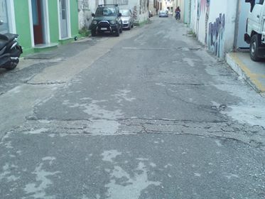 Οι πρόσφατες εργασίες της Τεχνικής Υπηρεσίας του Δήμου Σύρου – Ερμούπολης στο άνω τμήμα της οδού, κάνουν την αντίθεση ακόμη πιο έντονη. Παρατηρούνται ρωγμές στην άσφαλτο και ανισόπεδα σημεία, καθώς και ένα μικρό ανοιχτό σημείο στην άσφαλτο, φθορές οι οποίες πιθανόν έχουν επέλθει από την καθημερινή διέλευση βαρέων οχημάτων. Αξίζει να επισημανθεί ότι μπορεί να μην είναι ένας από τους κεντρικούς εμπορικούς δρόμους της Ερμούπολης, όμως το γεγονός ότι αποτελεί δρόμο πρόσβασης σε πολλές σημαντικές περιφερειακές υπηρεσίες, καθιστά αναγκαία την άμεση αποκατάστασή του.