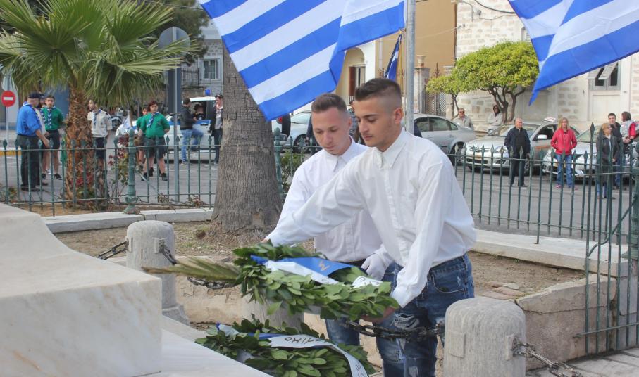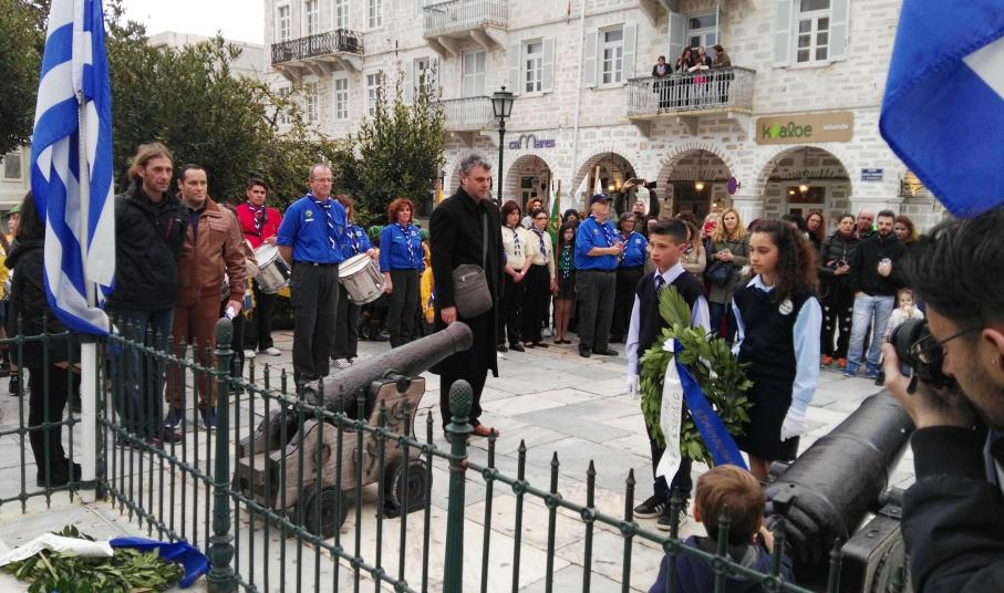 Η στεφάνωση ολοκληρώθηκε, όπως κάθε χρόνο, στον Αδριάντα του Ναυάρχου Μιαούλη από μαθητές του Γενικού Λυκείου Σύρου, του 4ου Δημοτικού Σχολείου Ερμούπολης και από το Σώμα Ελλήνων Προσκόπων.